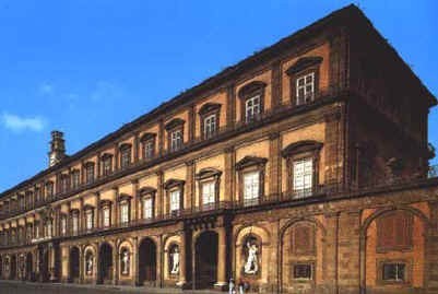 L’architetto Domenico Fontana progettò una residenza civile di forme tardo rinascimentali con colonne e ornamenti classici in facciata, cortile centrale quadrato con portico a pian terreno e al primo piano loggia interna sui quattro lati. Quando Napoli nel 1734 divenne capitale di un regno autonomo con Carlo III di Borbone, il Palazzo fu ampliato sul versante del mare, con l’Appartamento del Maggiordomo Maggiore, poi verso il Vesuvio con l’Appartamento per i Reali Principi. Vennero perciò a formarsi altri due cortili, oltre a quello d’onore. Gli interni furono allestiti nel gusto tardo barocco con marmi preziosi e affreschi celebrativi, tra i quali le opere di Francesco De Mura e Domenico Antonio Vaccaro. Le ultime trasformazioni avvennero al tempo di Ferdinando Il Borbone, tra il 1838 e il 1858: dopo un incendio sviluppatosi nelle stanze della Regina Madre, l’architetto Gaetano Genovese fu incaricato di un restauro generale nel gusto neoclassico. Sede dei Principi di Piemonte dopo l’Unità d’Italia, fu ceduto al Demanio dello Stato da Vittorio Emanuele III di Savoia nel 1919 e destinato in gran parte a Biblioteca Nazionale, mentre l’ala più antica sul Cortile d’Onore, ricca di testimonianze storico-artistiche dal Seicento all’Ottocento, fu adibita a Museo dell’Appartamento Storico.