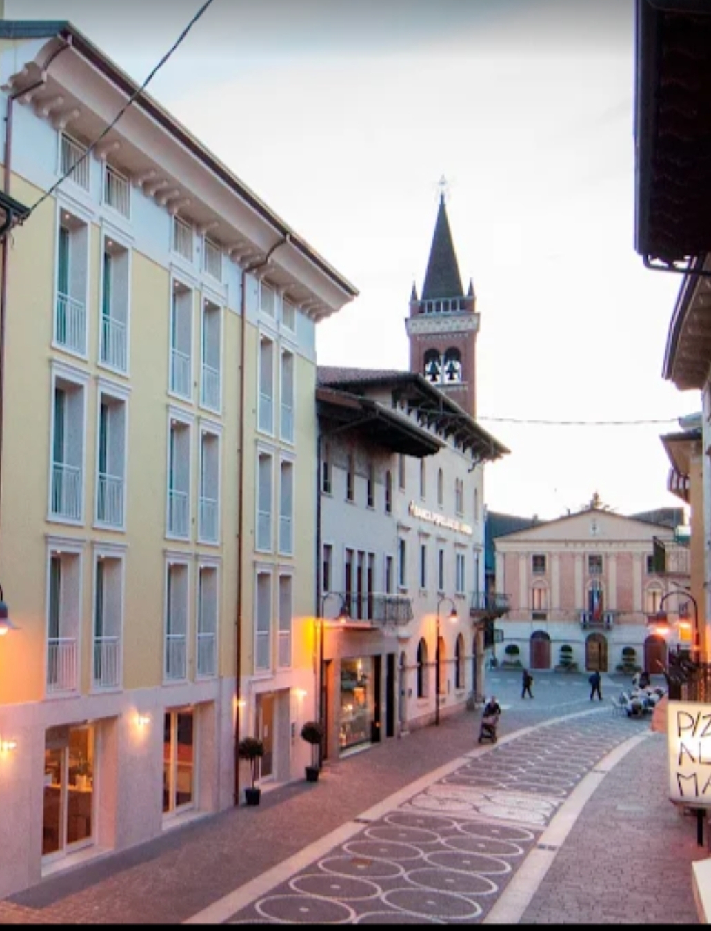 Accogliente reception con adiacente area relax ed eventi culturali. Quattro piani di eleganti appartamenti. Situato nel centro storico di Bussolengo VR.