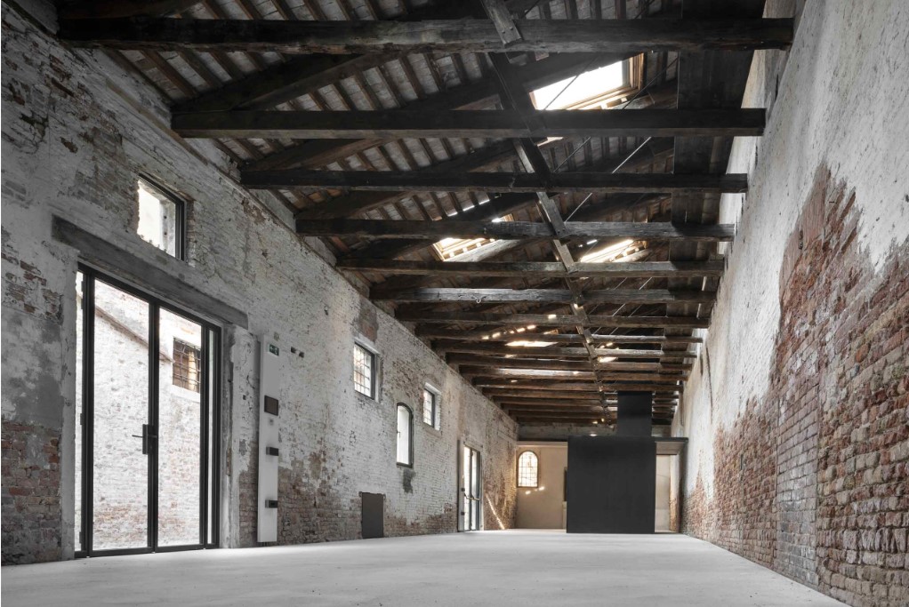 Salone Verde was carefully refurbished in 2020 making it a unique exhibition venue available for rent. The location is composed of two parallel buildings measuring 160 sqm and 130 sqm, separated by an 80 sqm open courtyard connecting Calle della Regina and Rio S. Maria Mater Domini. Salone Verde is located in the heart of the city, away from the heaviest tourist flows, but close to some of the most fascinating sites of the district, including modern art galleries such as Ca’ Pesaro and F. Prada.