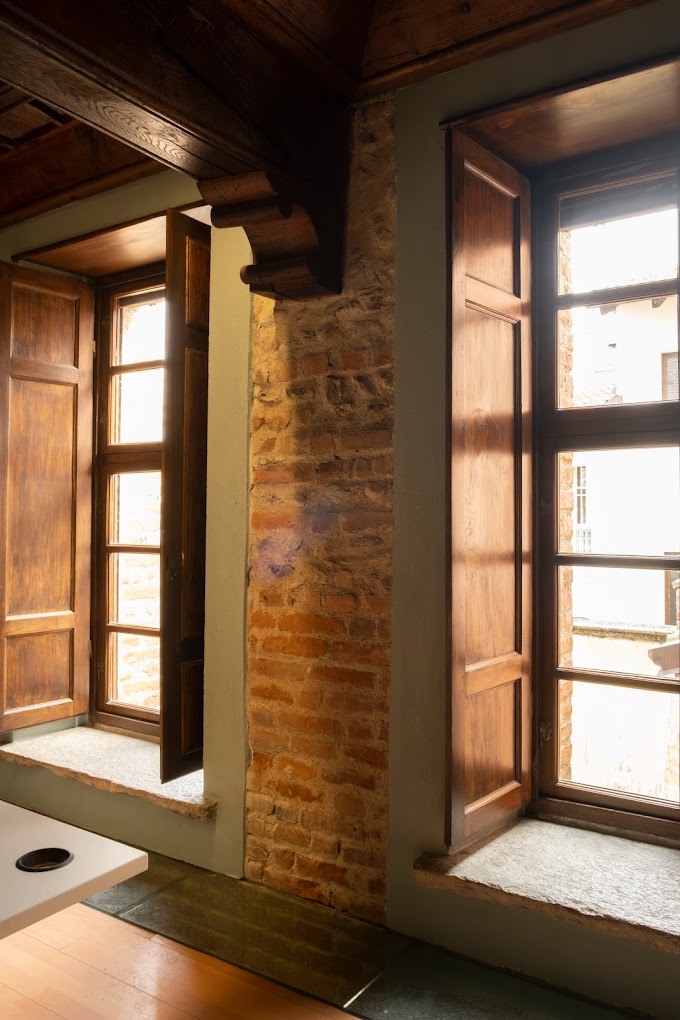 Via Piol, la via più famosa di Rivoli, un susseguirsi di ciottoli che si rincorrono in una lunga salita che si inerpica dolcemente verso il Castello di Rivoli (oggi un prestigioso museo d’arte contemporanea), man mano che saliamo, Via Piol si trasforma in Via al Castello, e le case del centro storico sembrano avvicinarsi, come se volessero sussurraci un segreto che parla di un’antica torre: La Torre della Filanda.