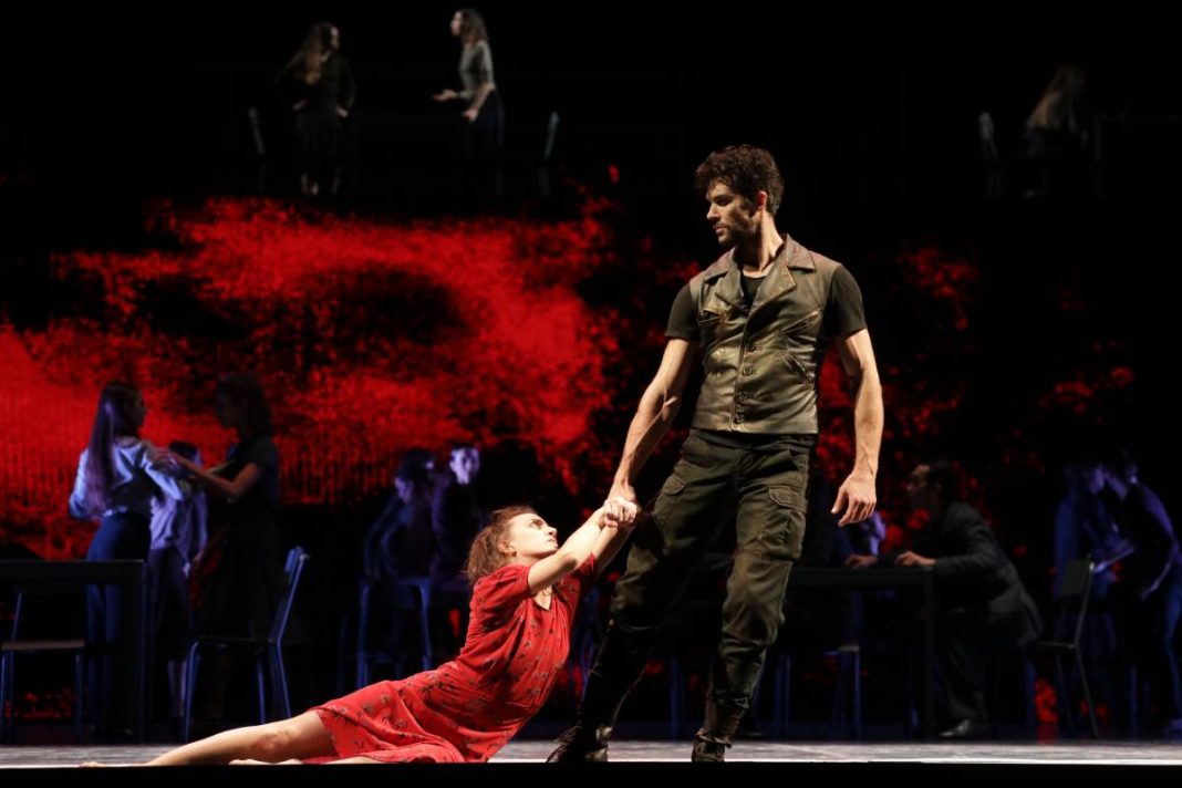 Produzione “difficile”, specie in epoca Covid, per la gestione di coro e gesti in scena, coreografia di Mauro Bigonzetti, ruolo danzante del titolo un’eccellente, intensissima Antonella Albano, che trova un’ottima chimica con l’étoile Roberto Bolle, gli interventi vocali di Anna-Doris Capitelli e Wuang Chang, quello attoriale di Fabrizio Falco.