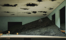 totale immobilità fisica dei tre protagonisti.Anche sul grande schermo al fondo della scena, sul quale