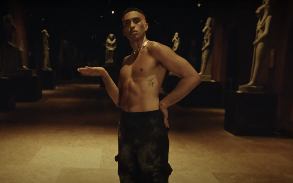 Dorado è l’ultimo brano di Mahmood, uscito a metà luglio, prodotto da Dardust, con la partecipazione di Sfera Ebbasta e Feid, riproponendo la formula ormai in voga da anni dell’ospitata di altri cantanti, per catturare target che altrimenti non sarebbero stati raggiunti. Il brano è tipicamente Mahmoodiano, con inflessioni orientali, con la tradizionale allusione alla mamma e a una cultura permeata di religiosità e, perché no, misticismo. D’altro canto, non solo i cristiani stringono rosari, anche il mondo musulmano ne ha uno proprio, chiamato Tasbeeh, per elencare i 99 nomi di Dio. Ma Mahmood è anche nell’ambientazione nordafricana, nelle sfingi e nelle silenziose statue dell’oscuro salone del Museo Egizio di Torino, grande protagonista, almeno per noi. Saranno state le direttive ed esigenze di tutela previste dal museo a dettare alcune scelte particolarmente sobrie di questo video.