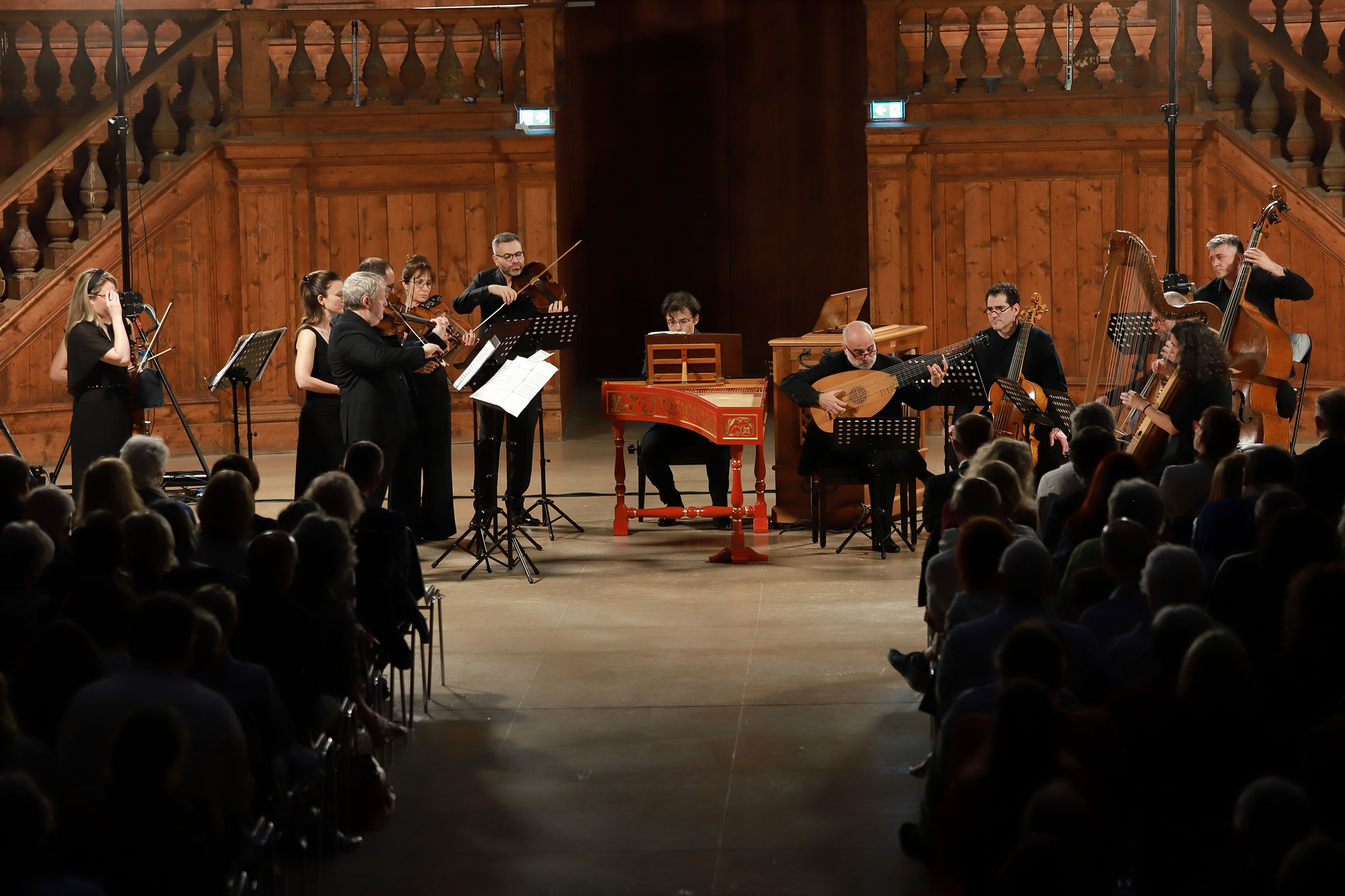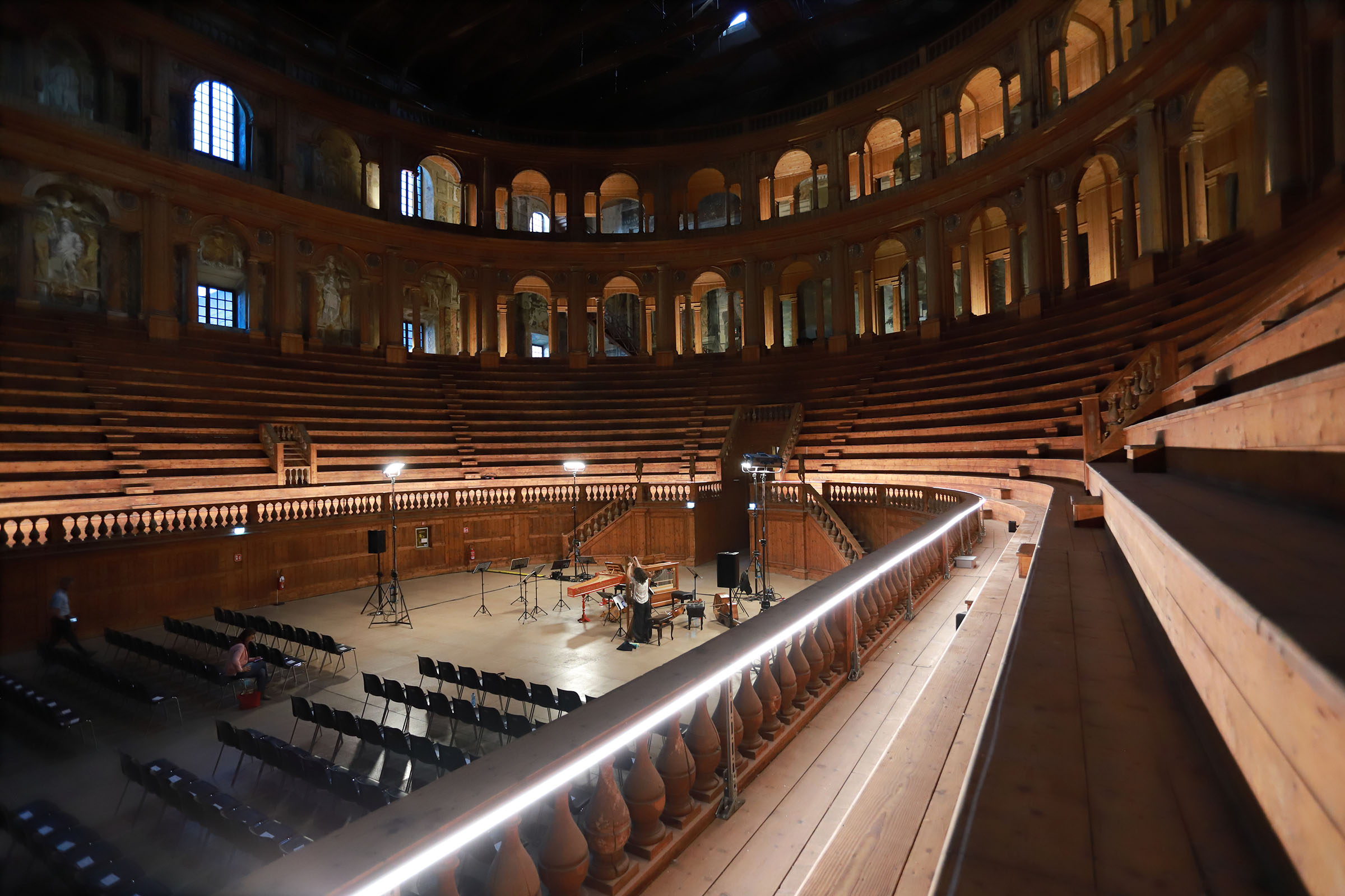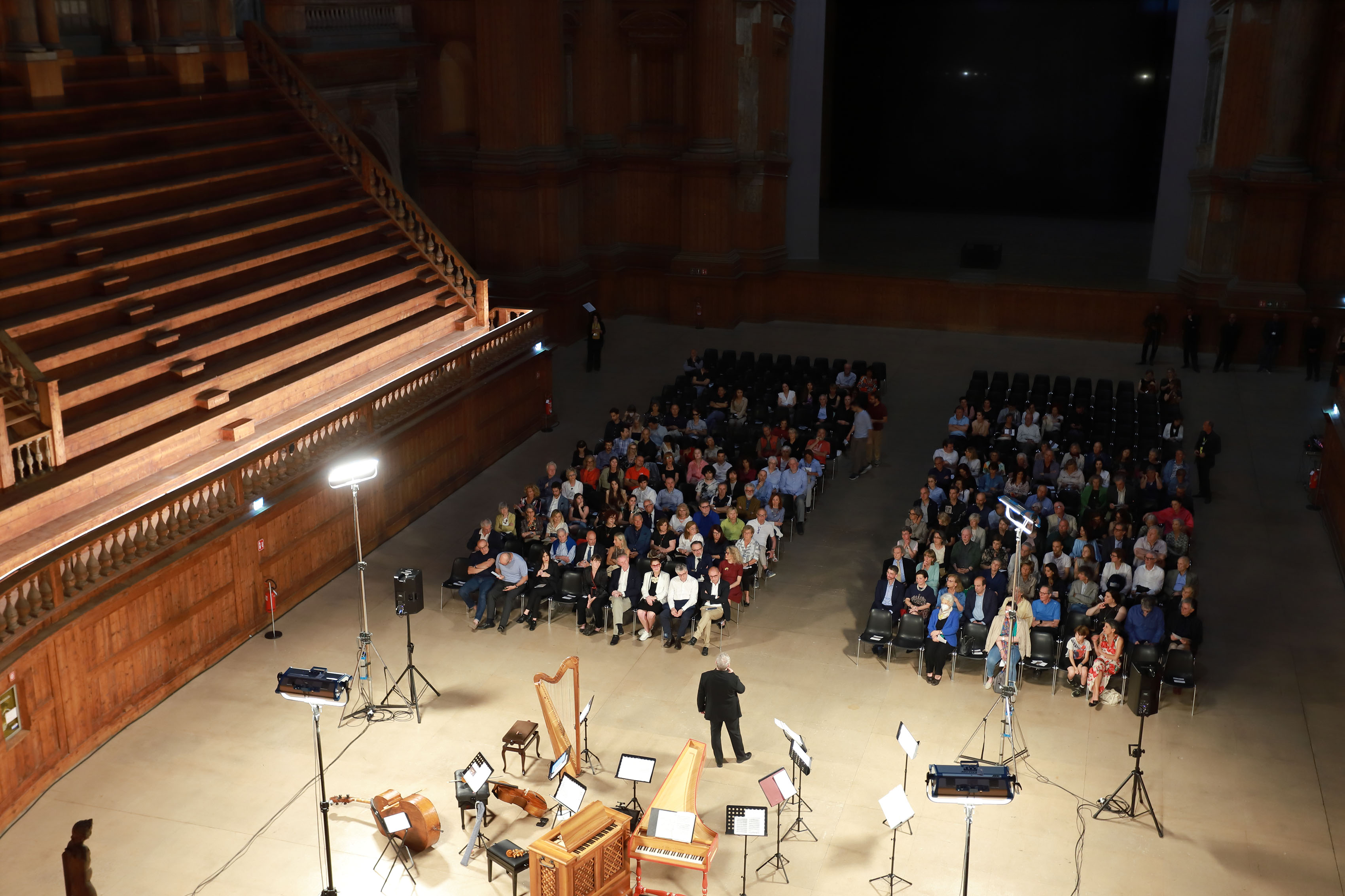 Il Farnese Festival riporta in vita un’epoca: quella che in Storia si definisce “età moderna” ma che curiosamente in Musica si chiama “musica antica”, buffa contraddizione terminologica che ci appare perfettamente in linea con lo spirito eccentrico dello stile Barocco. Ambizione di questa rassegna, più che di imbastire una semplice serie di concerti, ci piace idealmente vederla come il tentativo di rivivere oggi il senso, il gusto, la maniera del far musica nel periodo Barocco presso la corte del Ducato di Parma e Piacenza. Per questa ragione era essenziale che il luogo in cui si sono svolti i concerti fosse l’originale teatro dei duchi Farnese, costruito per volere di Ranuccio I tra il 1617 e il 1618 all’interno dell’imponente Palazzo della Pilotta e riconosciuto dagli esperti come il più antico teatro moderno della storia Occidentale.