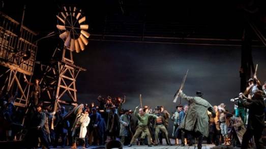 Hugo De Ana, che curava come di consueto anche scene e costumi, non rinuncia neppure qui al suo proverbiale horror vacui. Il palcoscenico è sempre stracarico, più che di cose, oggetti, ammennicoli, direi di situazioni, e di conseguenza manca quella leggerezza necessaria soprattutto a sottolineare il discrimine sia scenico che formale fra gli episodi d´insieme e i momenti intimistici, o comunque costruiti sui singoli.