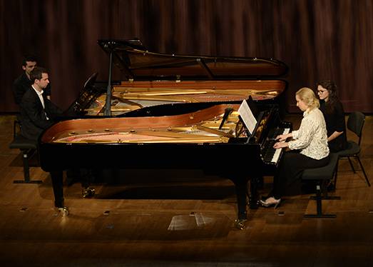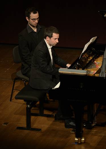 Anche il giorno prima, sabato, nella stessa sala, il concerto si era avviato con una Sequenza, la quarta per pianoforte. Tornando al discorso iniziale, Berio, e soprattutto questo Berio degli anni Sessanta, lo si voglia o no, è repertorio, è storia della musica, e in quanto tale a livello interpretativo non esiste più distanza da un classico. L’interpretazione della Sequenza per pianoforte passa dunque al vaglio della critica e del pubblico allo stesso modo di una Sonata di Beethoven o dei Notturni di Chopin. Anche qui, come nella precedente, l’esecuzione del giovane pianista Julien Blanc è stata impeccabile. Strumento protagonista dell’intero recital, al pianoforte solo ne è stato affiancato un secondo, intonato un quarto di tono sotto il primo. In programma i Three Quarter-Tone Pieces per due pianoforti, brano straordinario di Charles Ives, il padre dei pionieri musicali a stelle e strisce. La riflessione nei confronti di questa pagina ci porterebbe lontano, dal momento che la scordatura, meglio bisognerebbe dire, la “disintonazione” di uno dei due strumenti rappresenta simbolicamente, quasi antropologicamente, l’elemento dialettico fra una sorta di status istituzionale sancito in musica come il temperamento equabile (le dodici note della scala cromatica precisamente distanziate per semitono) e un’intonazione che collide strutturalmente, oltre che acusticamente, con quello stato. Pensando solo all’aspetto acustico l’effetto è stupefacente, e i due pianisti, Bertrand Chamayou e Tamara Stefanovich ce lo hanno servito su un piatto d’argento.