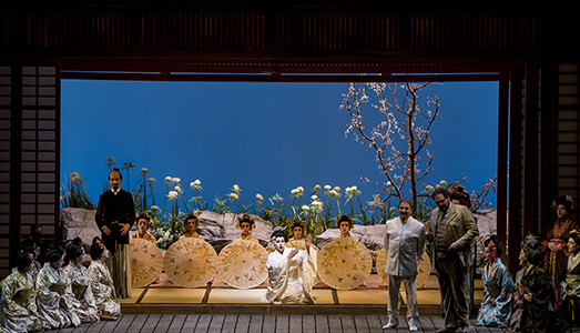 dittico Turandot di Ferruccio Busoni e la pucciniana Suor Angelica, e proprio in questo periodo si dà un altro particolare accoppiamento, Sancta Susanna di Paul Hindemith e Cavalleria rusticana di Mascagni, consolidando così una singolare liaison fra teatro musicale tedesco di primo Novecento e coeve esperienze italiane. Qui invece si parla di una delle opere più popolari, Madama Butterfly di Puccini, in un allestimento la cui semplicità, che non fa necessariamente rima con banalità, una volta tanto s’è messa al completo servizio della musica. La storia dell’ingenua e disgraziata Cio-cio-san, illusa, impalmata e turlupinata dal cinico “gringo” Pinkerton, e perciò inevitabilmente destinata all’harakiri, non è oggetto di improbabili decontestualizzazioni, di narcisismi e ghiribizzi registici, ma, come detto, è “semplice”. Come possono esserlo un tenue impianto scenografico e luci mai aggressive, costumi in stile e coreografie in un allestimento del Teatro del Giglio di Lucca ripreso da Rosanna Monti. Operazione che ricostruisce spazio e contesto domestico di una geisha (la protagonista del titolo) di inizio ‘900, secondo le intenzioni del regista Aldo Tarabella, che firma l’allestimento nel 2004, per celebrare il secolo dalla contestata prima assoluta alla Scala, e che crea una situazione caratterizzata da costanti rimbalzi fra oriente e occidente. Tarabella è musicista, e sa benissimo che la partitura di Puccini non chiede altro che di essere “messa in scena”, quindi non fa salti mortali per, dice lui, “raggiungere il cuore e i pensieri di Cio-cio-san e poter raccontare così degnamente al pubblico la sua storia”. Tutto succede come deve succedere, senza sovrastrutture, ma non senza che manchino leggere, quasi impercettibili sfumature giocate come su una carta (giapponese…) acquerellata.