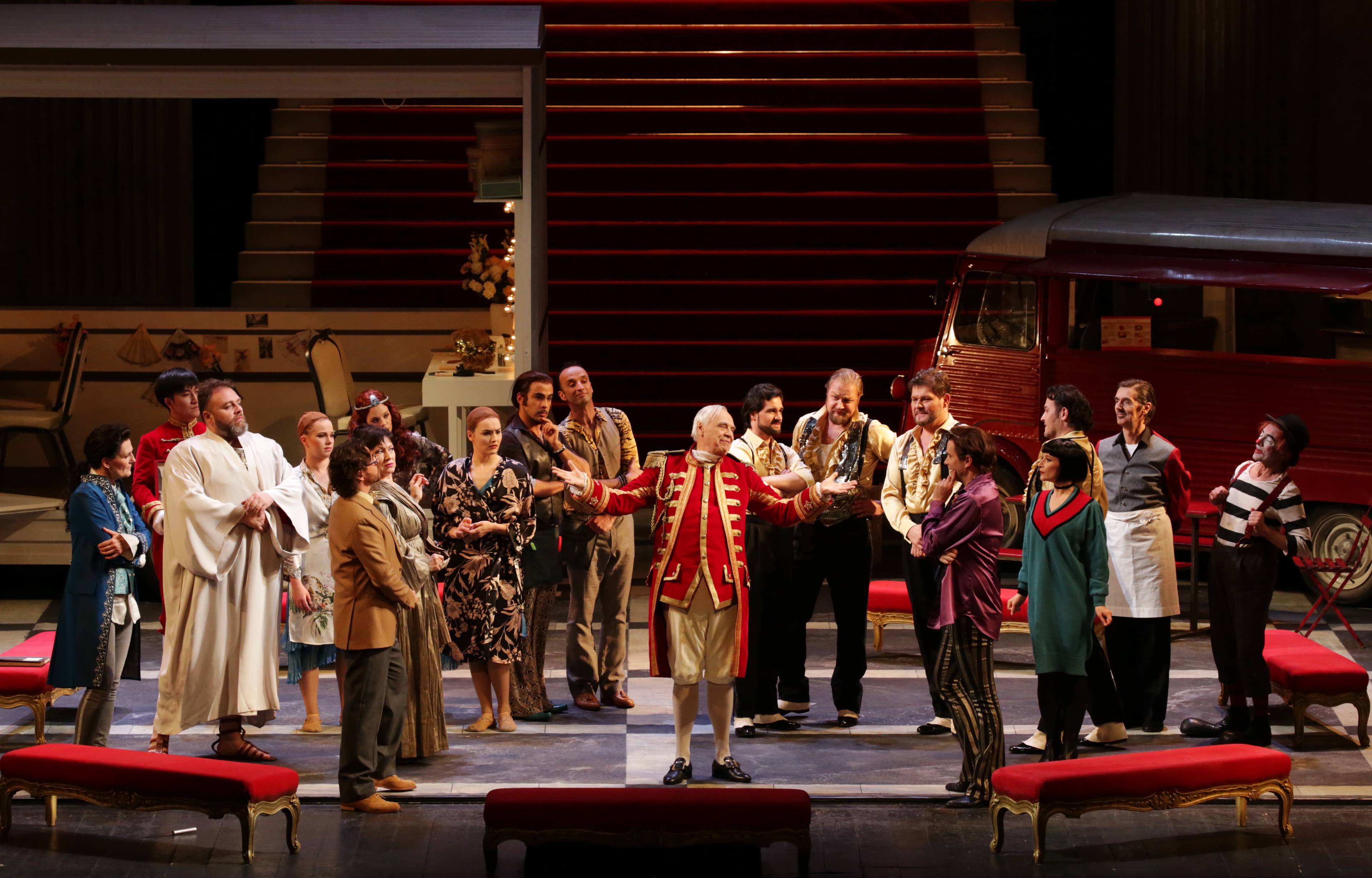 Sempre in Scala Ariadne auf Naxos, otto recite spalmate fra il 23 aprile e il 22 giugno, s’è incrociata proprio a Die tote Stadt. E si rinnovava in altro contesto il rapporto fra realtà e finzione scenica. Se Bruges era la città morta, la Vienna di Richard Strauss e di Hoffmansthal era la capitale di un impero, quello asburgico, ormai al tramonto. Rappresentata nella forma definitiva nell’ottobre del 1916, in piena guerra, l’opera è il sublime canto del cigno di un’epopea. A fagiuolo quindi l’apertura di scena con la recitazione del sovrintendente scaligero, un Alexander Pereira ormai a fine mandato, nel ruolo del Maggiordomo, che spiega in un tedesco molto wienerisch i capricci del padrone che vuol mischiare in un sol colpo due compagnie come si mischia vino e acqua: una che recita il mito, l’altra la commedia delle maschere. Franz Welser Möst dirigeva da grande esperto, riuscendo così a non far rimpiangere l’indimenticabile Wolfgang Sawallisch di un’edizione scaligera del lontano 1984. E se di quella produzione non si dimentica neanche la Zerbinetta di Editha Gruberova, qui non sfigurava neppure Daniela Fally vista e udita il 19 giugno. La regia di Frederick Wake-Walker, piacevole e ben condotta nel Prologo, si perdeva alla fine nella banalità da stelline infantili e pseudonatalizie dei video designer.