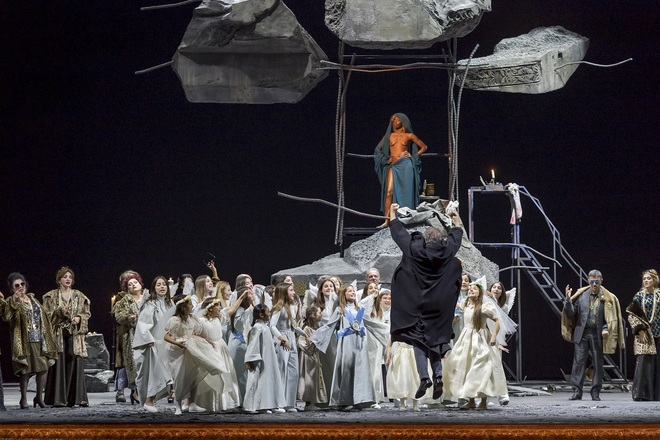 “E avanti a lui tremava tutta Castel Volturno” può essere la silloge registica della Tosca vista al San Carlo di Napoli; ma limitarsi a sostituire la Roma del libretto con la cittadina campana nota per la malavita per sintetizzare il lavoro di Edoardo De Angelis sarebbe ingeneroso nei confronti di questo regista al debutto operistico con un titolo che segue la cifra di precedenti suoi esiti cinematografici. In realtà, pur seguendo un’ambientazione connotata localmente, il taglio “camorristico” con Scarpia come “masto” e Spoletta e Sciarrone guappi, non guasta affatto. Anche se ha “schifato” – si direbbe a Napoli – la platea, almeno la sera del 28 gennaio, laddove il plotone della finta “falsa” esecuzione di Cavaradossi (buona la prova di Fabio Sartori) era sostituito da spari a bruciapelo in stile Gomorra. Tutti d’accordo invece sull’impianto scenico di Mimmo Paladino, suggestivo nel terzo atto laddove, grazie al suo segno pittorico, davvero “lucean le stelle”. Carmen Giannattasio vestiva il ruolo eponimo, misurata in scena e in voce, ma ricca di sfumature, di piccoli gesti suggeriti o assecondati dal regista. Piaciuta lei, meno lo Scarpia di Enkbat Amartuvshin: impari – a ripensarci – il confronto con Salsi. Donato Renzetti sul podio governava il tutto con sapienza antica e sensibilità di profondo interprete pucciniano.