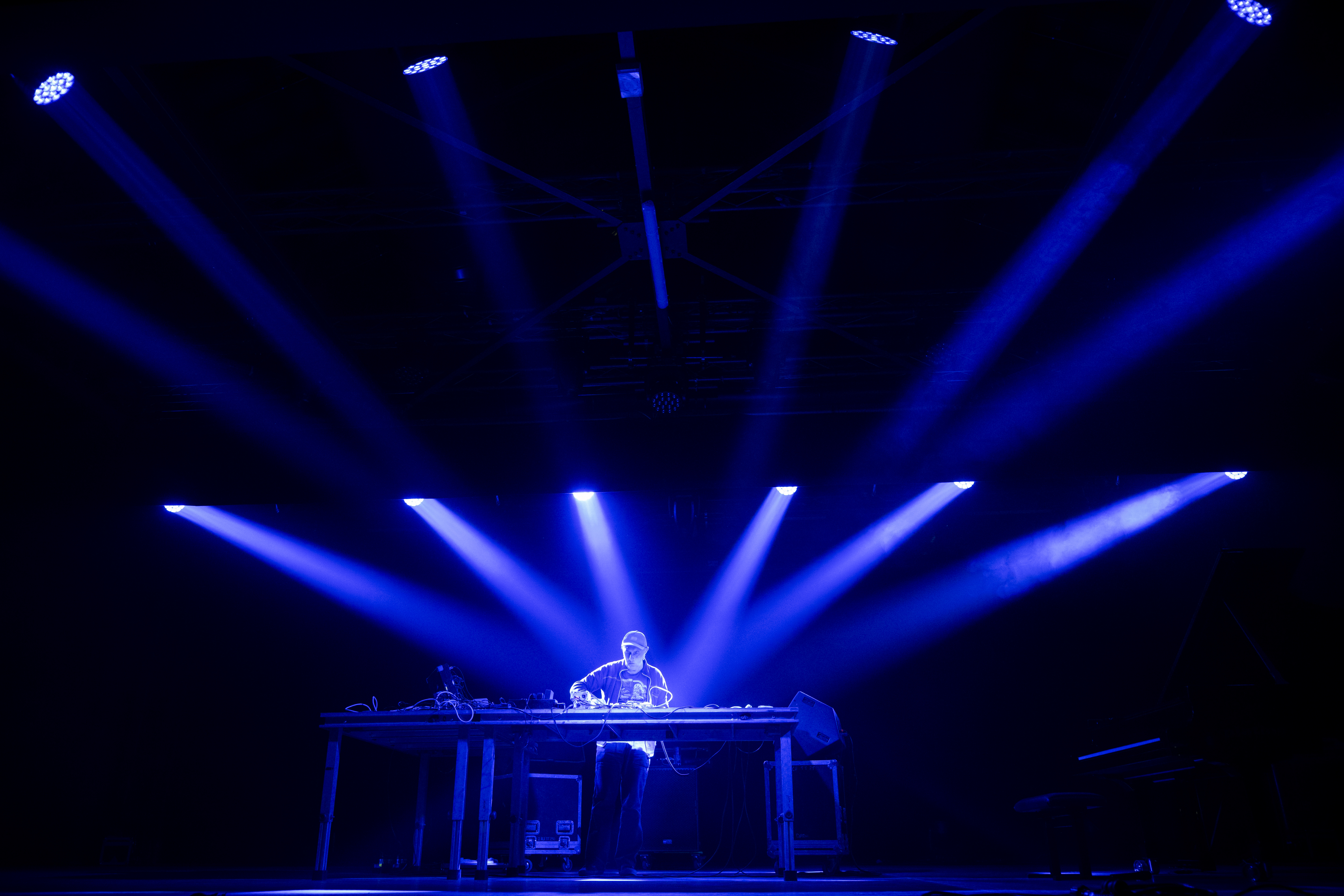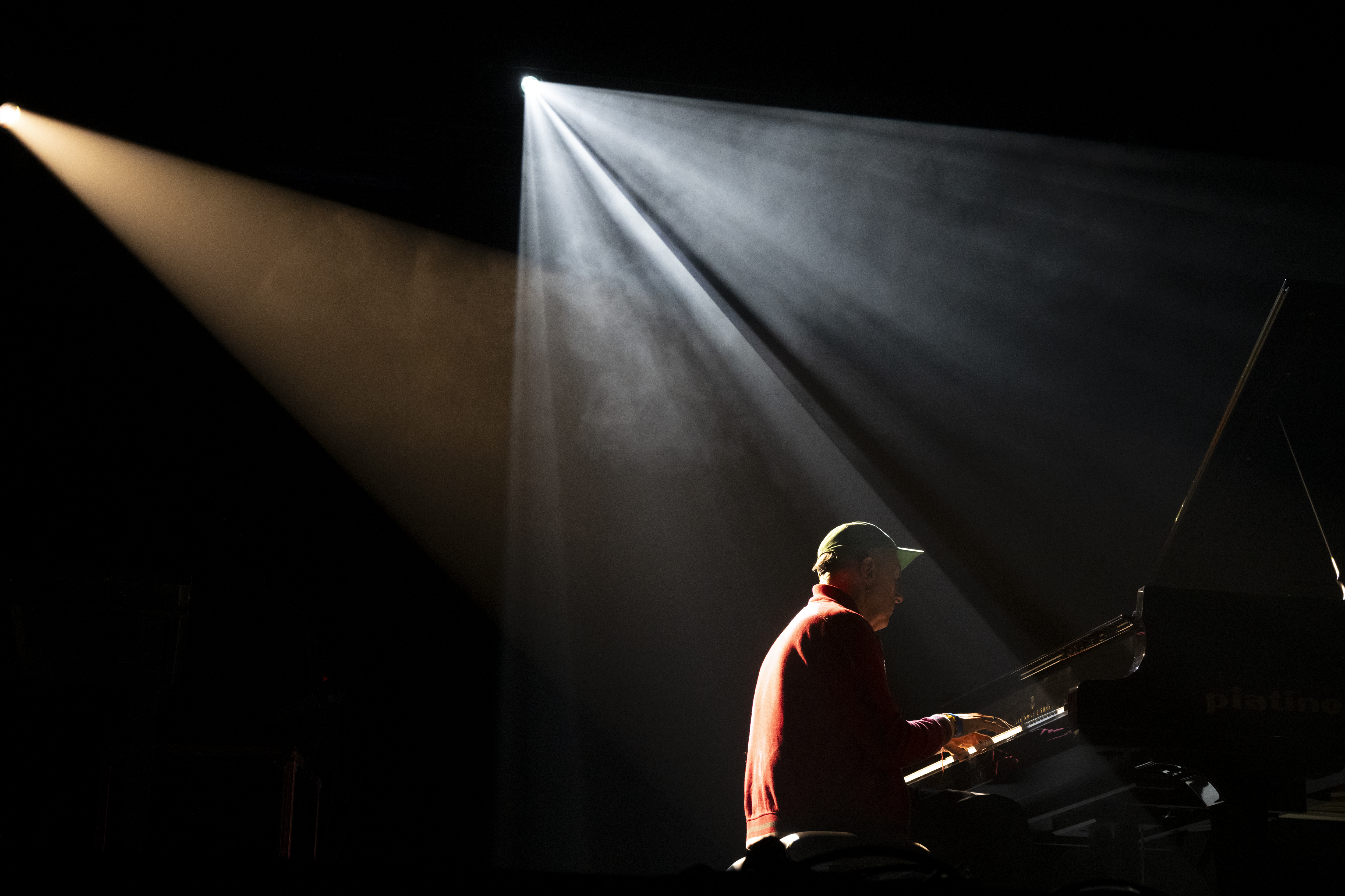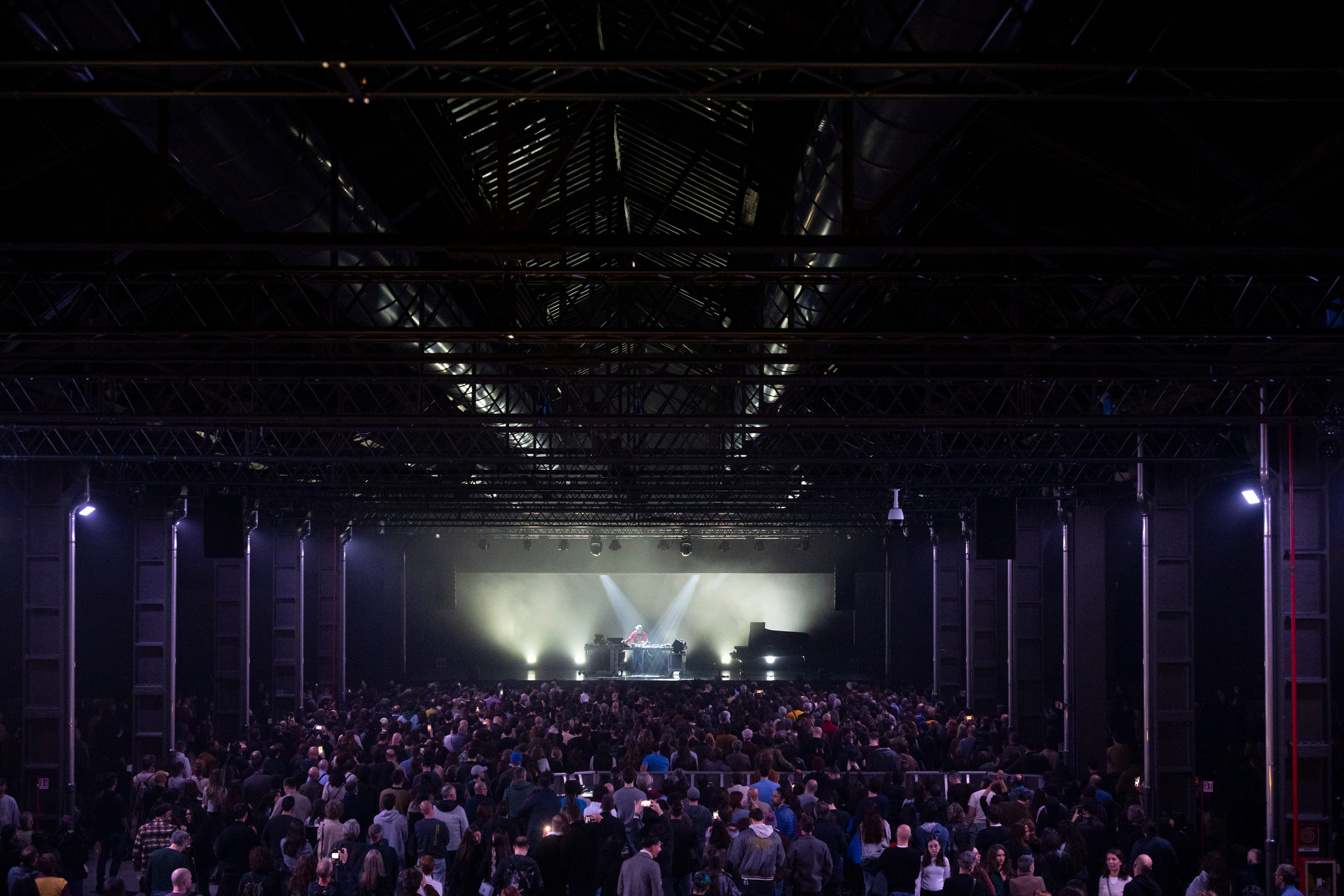 L’ascolto ha assunto subito una dimensione raccolta e attenta. Il concerto si è aperto con il pianoforte. Poco alla volta sono entrati i sintetizzatori e le trame ambient hanno iniziato ad allargare il campo sonoro. Anche la luce è cambiata, passando gradualmente dal blu a un bianco più netto. Con l’ingresso delle stratificazioni elettroniche il suono ha preso maggiore densità e il ritmo ha iniziato a crescere, rendendo la struttura musicale progressivamente più incalzante.