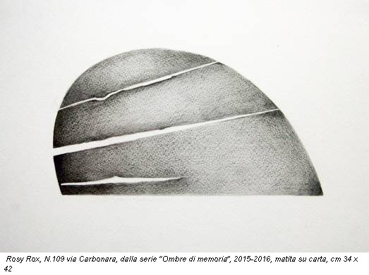 Rosy Rox, percependo il profondo significato simbolico dei sopraluce, propone, all’interno della grande corte di Palazzo Caracciolo, gli studi a matita di diciassette roste dei portoni situati lungo via Carbonara, dove è sito Palazzo Caracciolo, via Settembrini e via Cirillo, che segnano un percorso verso il vestibolo dell’edificio, dove è allestita l’installazione Corpo d’Ombra. L’opera, in acciaio e alluminio, riproduce e scompone l’ombra della rosta del portone della residenza cinquecentesca con cui ha un dialogo diretto: luci e ombre, incrociandosi durante alcune ore del giorno, si producono in nuovi giochi, come un rinnovato invito alla conoscenza di un palazzo dove la vita continua a scorrere con un presente vivo. Un processo che l’artista definisce di disvelamento, come un continuo divenire verso la comprensione di nuove identità.