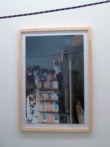 La fotografia di The Opposite of Backwards, che testimonia dell’azione di Frankovich, è stata attaccata capovolta alla parete. La spinta motoria ivi scomposta è respinta invece, dal campo visivo nella registrazione di Luna (2007), in cui un impassibile punto di ripresa warholiano si accontenta di inquadrare il tetto di un edificio milanese.