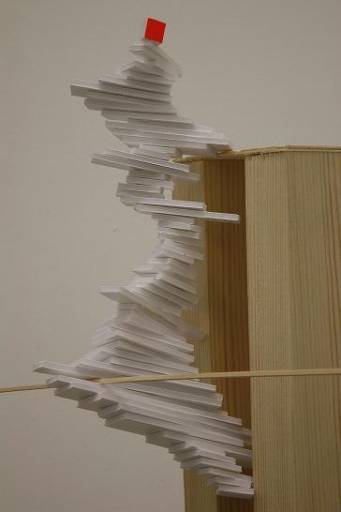 Certo, non dispiace osservare le ludiche creazioni di Cattaneo. Fatte di materiali poveri, come legnetti, fascette da cablaggio, polistirolo, scotch, nylon. Tutti assemblati a mo’ di bricolage e dall’esito finale “poco leccato, minimale”, come sostiene lei stessa. Ora dispiegate sul pavimento, ora su un piedistallo, ora pendenti dal soffitto, le astratte installazioni della giovane artista divertono lo sguardo, lasciando trapelare le giunture e gli incastri che tengono uniti le varie componenti fra tensioni, equilibri instabili e strutture a vista, concettualmente affini al tecnicismo dell’architettura contemporanea.