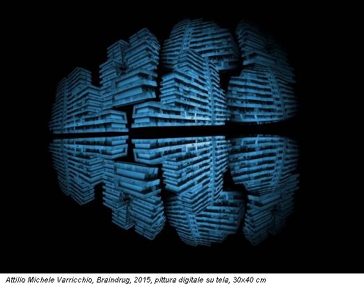 Il passaggio alla seconda sala è secco, la forma plastica della rappresentazione astratta cede bruscamente il posto al prelievo diretto dal caos del reale, espresso attraverso la pittura digitale su tela e la fotocomposizione. «Mi piace sperimentare tecniche diverse ma non è un tradimento, piuttosto, è rendersi conto dei mezzi del proprio tempo», ha spiegato Varricchio. La rigida scansione geometrica sembra scomparire, tra i piloni sgretolati delle rampe autostradali che si inerpicano sulla verticalità dei condomini, in Io sono stato qui, chi racconterà la mia storia, light box del 2013, mentre il ritmo della visione è disfatto dalla sequenza prospetticamente vertiginosa dei balconi, in Io sono stato qui…primo girone. Il disordine artificiale dell’esterno si riflette nell’intricata mappatura cerebrale di Braindrug, serie di nove pitture digitali che, simili a lastre mediche, ritraggono gli effetti delle droghe sulle sinapsi. È il brutto estetizzato che recita la melopea della periferia, assurta a simbolo stereotipato di uno spazio pieno e irrazionale, affollato dai detriti sociali generati dall’azione compulsiva dell’uomo.