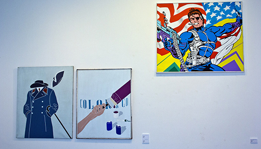 In mostra sono presenti importanti artisti di quel momento magico dell’area romana come Mario Schifano, Franco Angeli, Mario Ceroli, Tano Festa, Giosetta Fioroni, e quelli dell’area milanese come Valerio Adami, Emilio Tadini, autori che hanno saputo trattare i temi del nuovo paesaggio visivo in un paese che andava aprendosi a nuovi stili di vita, artisti capaci di generare nuove immagini e raccontarci una nuova e felice stagione dell’arte, favorita dalla libertà di rivolgere l’attenzione agli oggetti, ai miti e ai riti contemporanei, ai linguaggi della società dei consumi e al loro culto, come è visibile nelle silhouettes lignee di Ceroli, i fumetti di Adami, i racconti onirici di Tadini, i paesaggi anemici di Schifano, le tele emulsionate di Festa, le inquadrature “segninfantili” di Fioroni e nelle riflessioni squisitamente ideologiche di Franco Angeli. Un confronto decisamente tra passato e presente – come sottolinea lo stesso curatore – senza alcuna finalità storico-filologica, estendendo una visuale più estesa che guarda alla Pop Art italiana a partire dagli Anni Sessanta includendo – secondo noi – anche un’ipotetica e quando mai provvisoria evoluzione più recente di autori come Romina Bassu, Michele Chiossi, Francesco De Molfetta, Giampaolo Frizzi, Lucio Perone, Giuseppe Restano, che evidenziano temi incentrati sulla manipolazione e sul consumo di immagini in età contemporanea. Permane su tutti il peso della Pop art a suggellare tale dialogo di continuità tra passato e presente.