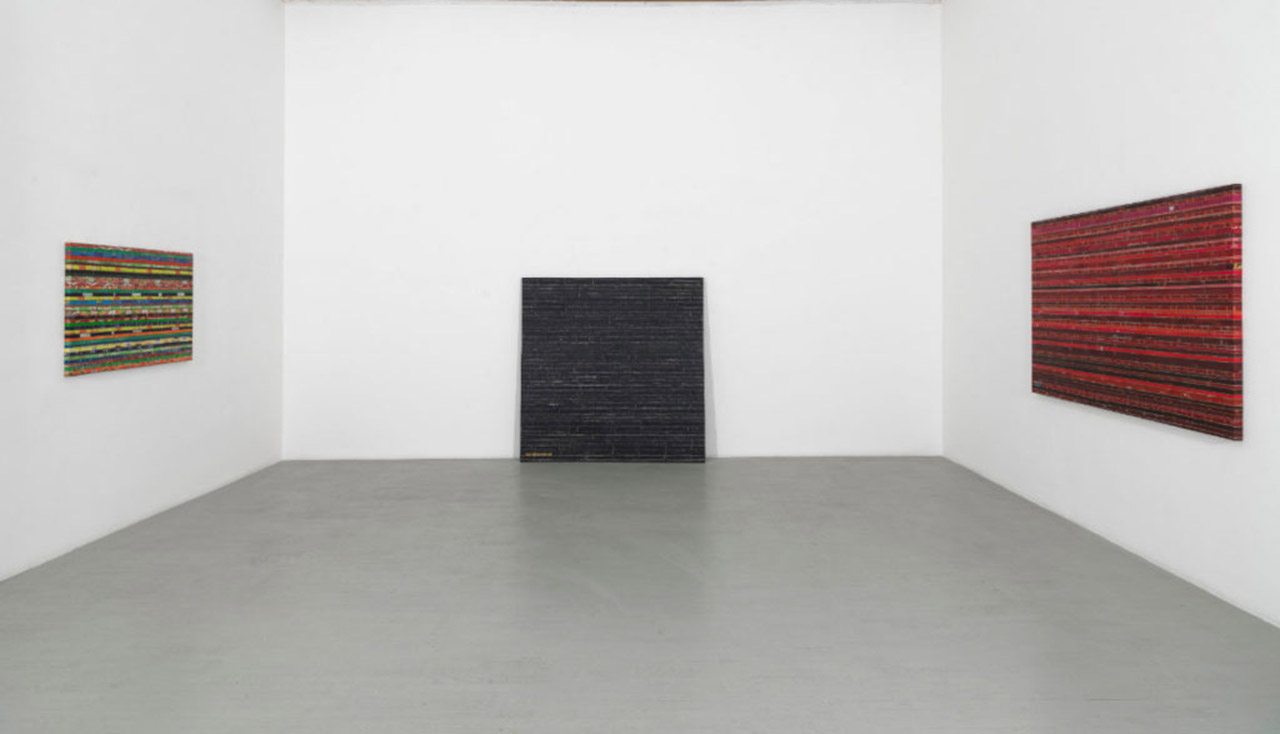 Un intrecciarsi di pensieri e parole, con queste ultime protagoniste all’interno della serie di lavori realizzata dall’artista franco-algerino Adel Abdessemed (1971, Constantina, Algeria) per la Galleria Alfonso Artiaco. Le opere, create appositamente per la mostra, sono definibili col nome di Cocorico Paintings, in omaggio al film del 1974 diretto da Jean Rouch, Cocorico Monsier Poulet, e consistono in una successione di tele di diverse dimensioni composte da intrecci di latta colorata, su cui trova spazio una dichiarazione scritta, collocata sempre nella medesima posizione, in basso a sinistra, come in una sorta di didascalia. In realtà le parole vengono selezionate dall’artista per il loro valore fonetico ed evocativo, quindi non sono né un titolo né un’indicazione semantica ma risultano, comunque, in grado di innescare quel processo di influenza evocativa voluto dall’artista nei confronti del fruitore, che subisce il fascino della parola scritta. Alcuni dei termini utilizzati sono stati presi in prestito dalla cultura locale, così com’è accade anche per il titolo della mostra, che è un estratto della poesia di Totò del 1964, ‘A livella.