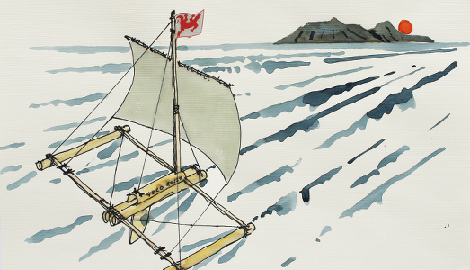 In questa epopea frammentata, gli acquerelli tracciano la linea principale, ritraendo i profili delle Isole incerte, continenti che scompaiono per riapparire, improvvisamente, in qualche angolo di oceano, oppure raffigurando gli schemi dei progetti di velieri come il Gesù Cristo, il Geco Rosso, il Requiem, la Cybele, «barchi di mare» ai quali sono legate altre trame e gli unici in grado di approdare a quelle isole. Alcuni di questi barchi sono stati realizzati, «costruiti dal 1994 al 2016 con tutto ciò che si trova vicino o in riva al mare: camicie dismesse, bambù cresciuti dietro la panca azzurra di Seiano, canne di Stromboli, Limnos e Salina, vari spaghi e lenze», spiega Orioli, come concretizzazione di un avvenimento, di un’esperienza, un diorama concentrato tra le vele e le sartie. La storia è completata da taccuini e diari di bordo fitti di annotazioni, strumenti di navigazione corrosi dalla salsedine, ognuno porta i segni di una parte del racconto, come il Gavitello rosso, «striminzita sintesi di qualcosa di importante», simbolo di un punto di vista ondeggiante nel nulla.