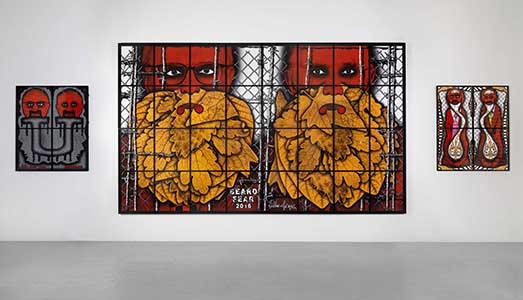 Gilbert & George, THE BEARD PICTURES, Veduta parziale della mostra, dicembre 2017, Galleria Alfonso Artiaco, Napoli. Courtesy Galleria Alfonso Artiaco, Napoli. Foto: Luciano Romano