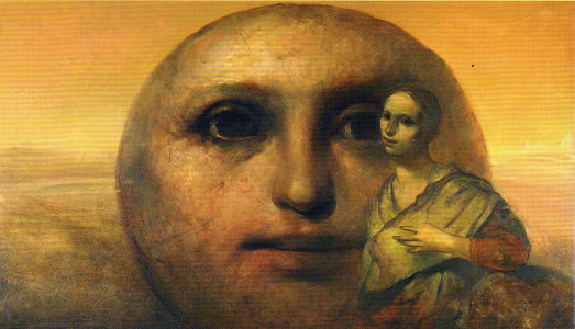 La stessa attenzione al dettaglio emerge in due piccolissimi olii, come nell’opera in cui è raffigurata una donna avvolta in un fondale oscuro e nei panneggi del suo vestito, tutto in soli 9×11 centimetri. Rao è stato soprannominato “Il pittore della Luna”, poiché nelle sue opere ricorre frequentemente l’immagine del satellite, al punto da poter essere accostato a Giacomo Leopardi, col quale ha condiviso questo tema, espresso in diversi lavori sia in forma di corpo celeste che in volti antropomorfi, come nella grande tela posta a metà del percorso espositivo.