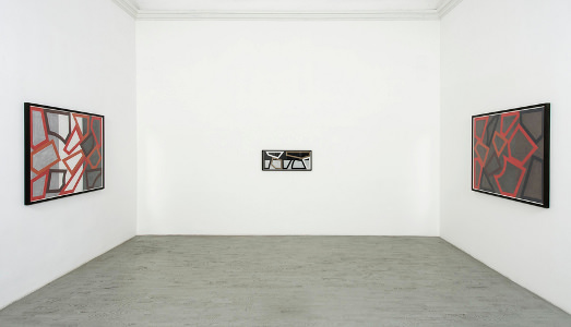Lo spazio e il nitore della Galleria Alfonso Artiaco esaltano ancora di più le linee delle 13 opere esposte, favorendo un’azione mentale che, spontaneamente, s’impone in tutta le sue evidenza: quella di iniziare a tradurre le geometrie rappresentate nei luoghi narrati e i luoghi narrati nelle geometrie rappresentate. Durante questo lungo e strano esercizio di decodifica, si comincia a pensare quanto possa essere bello avere la stessa capacità di saper appuntare l’intero mondo, attraverso sculture piane e colori.
