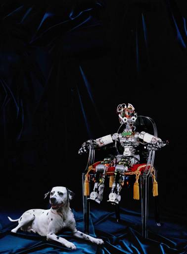 Mostra in cui la tecnologia è l’argomento, ma senza osanna né condanna. Piuttosto, secondo uno spirito curioso e sperimentale, che tiene un piede in studio e uno in laboratorio. All’Iit di Genova l’artista ha infatti “conosciuto” iCUB, un bimbo robot di quattro anni, messo in posa su una seggiola di plexiglas trasparente, trono moderno per un principino del futuro. Per immortalarlo degnamente, è stato allestito un set foderato di sontuosi drappi, con tanto di cane accucciato ai piedi, che emula la classica iconografia dei ritratti regali. Un mix tra foto e pittura, quasi per “umanizzare” il soggetto, con un riferimento alla tradizione.