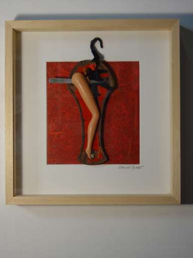 Ancora souvenir d’Afrique (piccole maschere tribali, conchiglie, piume, collane nordafricane) nelle cornici quadrate -quindici in tutto- disposte, magari, accanto alla gamba rosea di una bambola tipo Barbie, alle coccinelle di plastica, alle forbici da barbiere, allo schiaccianoci di legno, allo strappo di una vecchia carta da parati. Cianfrusaglie della nostra epoca, venute fuori a caso dal cesto di un rigattiere. L’atmosfera si carica di suggestioni al confine tra magia e superstizione -stavolta l’omaggio all’Africa primordiale è piuttosto esplicito- nella sala grande, dove le sculture di bronzo (Otto incubi magri) sono disposte in circolo, come in una danza tribale, intorno ad una testa di Giano. Il duplice volto bronzeo, collocato su un alto piedistallo da cui pendono sei scheletri di braccia e mani, alluderebbe, secondo il curatore, da una parte “all’iniziazione verso l’incognita dell’esistenza, al mistero della fecondazione divina” (volto con barba), e dall’altra alla ritualità della morte (volto senza barba).