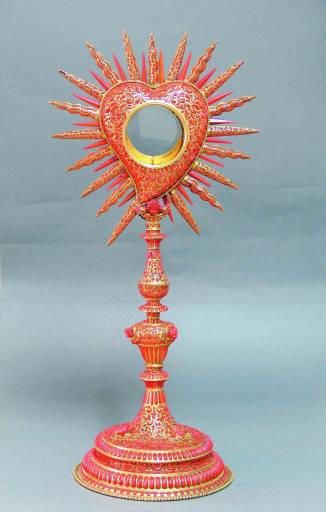 Abbondano perciò nel percorso suppellettili sacre e profane: ostensori incorniciati da raggiere fiammanti (tra cui uno, curiosissimo, a forma di cuore), capezzali con santi e madonne, acquasantiere, crocifissi, altaroli, calici e paliotti (notevole, per ricchezza d’ornato e soluzioni prospettiche, quello di San Francesco di Paola che attraversa lo Stretto di Messina); ma anche saliere, calamai, una coppia di pavoni. Una varietà che rimanda a un altro aspetto, che conferisce unità e pregnanza al progetto espositivo. Che è quello del sincretismo religioso e dell’ibridazione interculturale, fioriti e sviluppatisi nella culla del Mediterraneo e generati, paradossalmente, da una lunga e travagliata vicenda di migrazioni, talvolta coatte, e discriminazioni. Questi (capo)lavori, creati prevalentemente per il mondo cristiano, sono infatti in debito verso arabi ed ebrei: furono questi ultimi ad affinare le tecniche manifatturiere, apprese nel Medioevo alla corte di Federico II, autentico coacervo di civiltà orientali e occidentali, e a divulgarle sulle coste di Genova, Livorno e del Regno di Napoli in seguito alla violenta e intransigente politica antisemita attuata in Spagna e in Sicilia sotto i cattolicissimi Ferdinando d’Aragona e Isabella di Castiglia nel 1492.