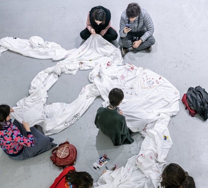 Montini è stato invitato da FdG Projects (dal 4 al 6 ottobre), lo spazio di ricerca fondato dal collezionista Frédéric de Goldschmidt, a sviluppare nei loro spazi una nuova tappa di Questo Anonimato È Sovversivo, il «colossale progetto dell’artista italiano Ruben Montini, sviluppato a partire dal 2016 (qui l’intervista in cui l’artista ce lo raccontava nelle fasi iniziali). Il lavoro consiste in un vasto ricamo a mano che sarà il risultato della cooperazione tra persone che vivono in tutta l’Unione Europea. Ognuno è libero di ricamare quello che vuole. Il progetto dà totale libertà al pubblico dei partecipanti. L’artista non chiede né commissiona alcun disegno anzi, chiede – ancora di più – di lasciare perdere l’ultimo filo… in modo che le persone nelle tappe successive dei diversi Paesi possano continuare, o modificare, o interpretare in modo personale ciò che è stato iniziato da qualcun altro. Così facendo, il lavoro cerca di dare luce a un’idea di cooperazione, di collaborazione, di lavoro a distanza per raggiungere un obiettivo specifico. Il risultato finale di questo enorme lavoro di ricamo, infatti, racconterà la storia di diverse persone che si sono incontrate – in modo metaforico – sulla superficie di questo lenzuolo di cotone, vivendo lo stesso sentimento di condivisione e di unione attraverso la realizzazione dell’opera. L’attività di ricamo è quindi “solo” una scusa per creare qualcosa di più grande, apparentemente intangibile, che è il senso di comunità, di appartenenza a un’unione più ampia e senza confini», ha spiegato l’artista.