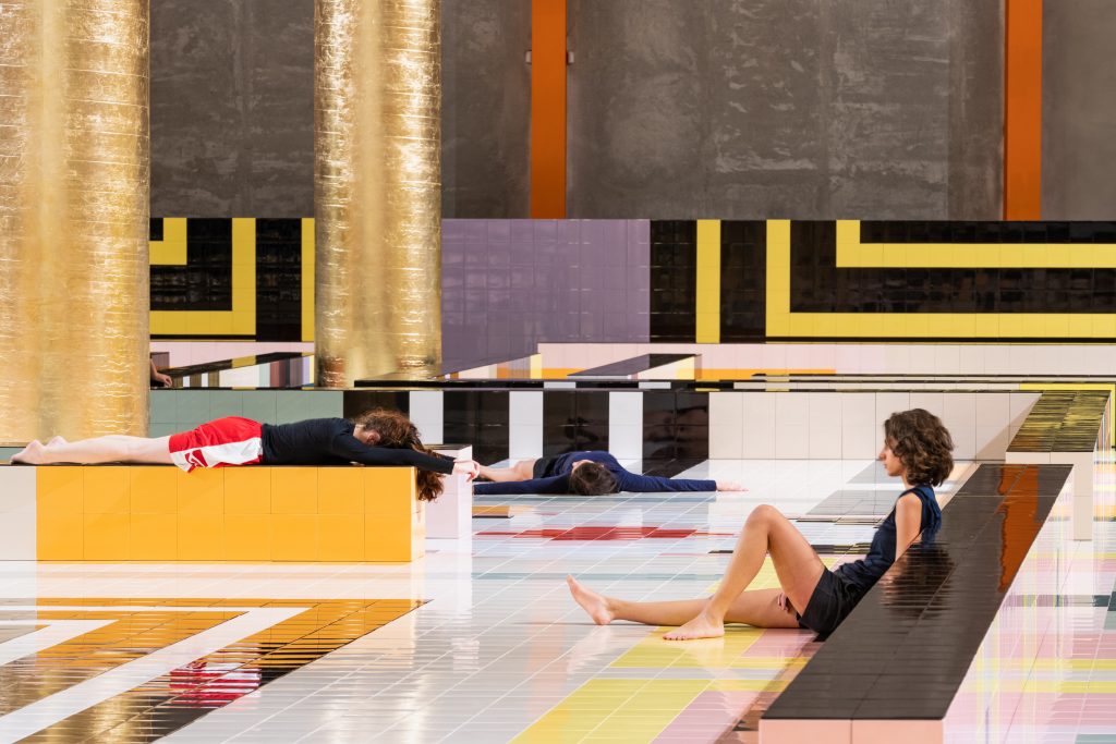 Il progetto coreografico è stato progettato in relazione all’allestimento temporaneo realizzata da OMA/AMO per la sfilata di Prada durante la Milano Fashion Week 2019, lo scorso settembre.