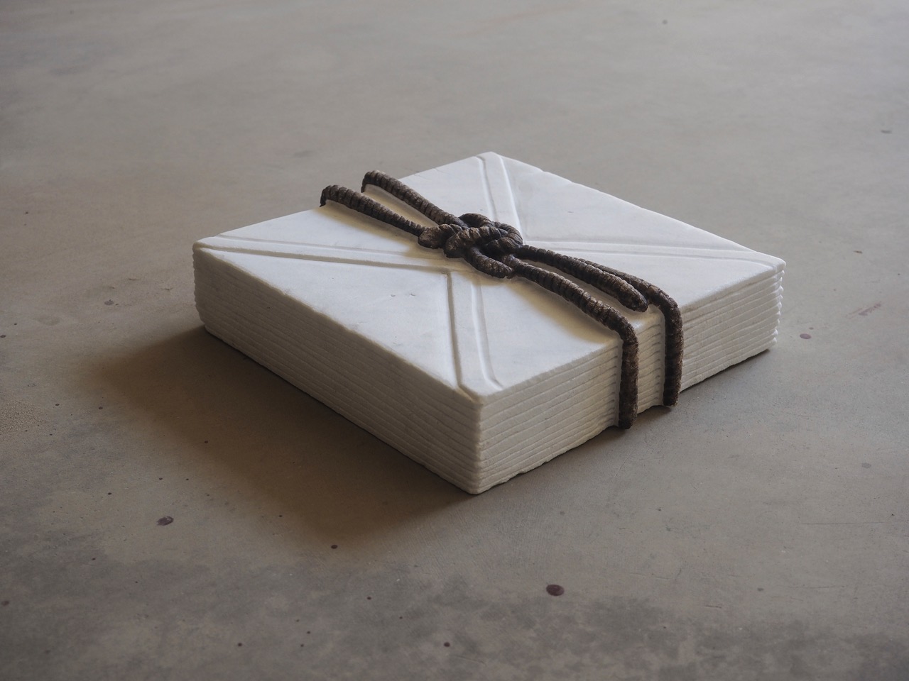 Valeria Vaccaro con il marmo riproduce oggetti umili, di uso industriale, marmoree casse da trasporto, pallet, fogli di carta, buste, fiammiferi, trasformati e sottoposti a una lavorazione che li presenta sfregiati da bruciature, anneriti al punto da assumere l’esatta parvenza del legno e della carta, sollevando così la questione della contemporaneità, della incertezza e della transitorietà.