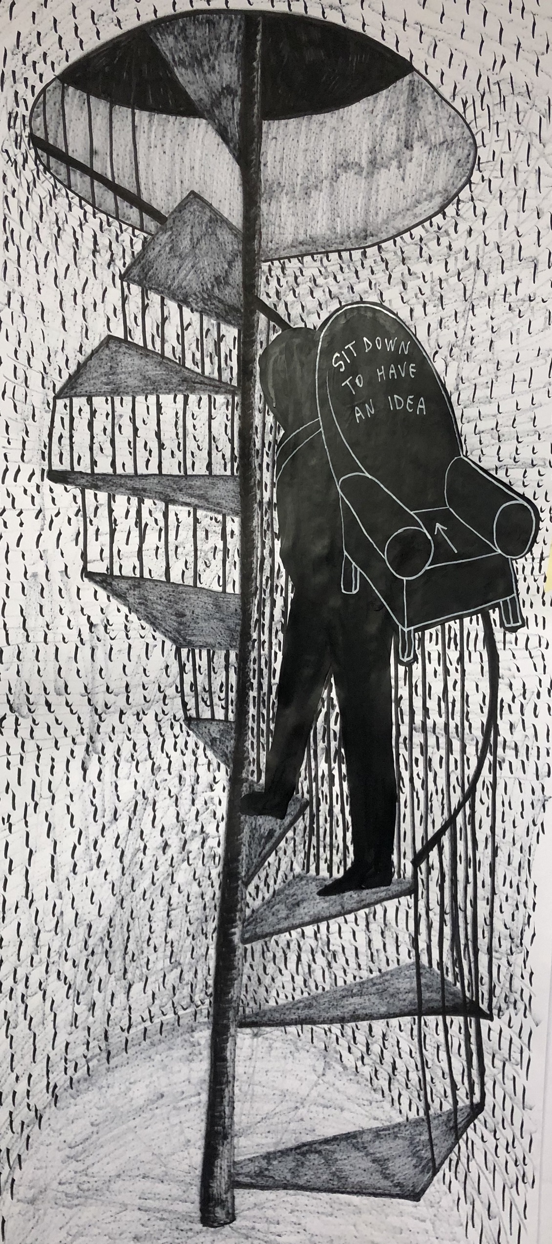 «È nato dal desiderio di Andrea Bianconi di portare il progetto “Sit Down to Have an Idea” nella sua città con un’azione molto significativa: portare di persona la poltrona agli oltre 40 metri d’altezza del Torrione medievale, che domina Vicenza. È una performance solitaria, quasi un rito di purificazione al termine di questi mesi così duri e angosciosi per tutti. Salire il Torrione vuol dire assorbirne il magnetismo e l’energia: arrivato in alto all’interno della lanterna, Bianconi accenderà dei fasci luminosi, come segno di una rinascita. È un gesto che richiama l’uso della luce fatto da Alberto Garutti a Bergamo, dove i lampioni di una piazza centrale si accendono ogni volta che un bambino nasce in città. Fondazione Coppola, che ha donato alla città il Torrione dopo averlo restaurato e reso sede espositiva di grande suggestione, ha voluto far suo questo gesto di Bianconi. È energia donata e condivisa, è stimolo per una rinascita».