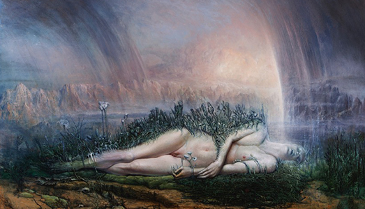 In alto: Il rizoma di Pugin, 2016, olio su lino, 135x200cm