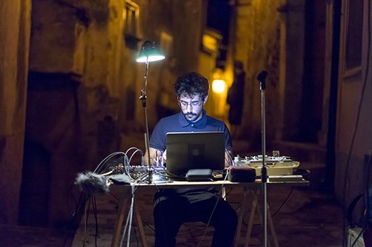 A Cielo Aperto chiude questa edizione 2018 con la performance sonora Composizione di retorica del musicista elettroacustico e compositore Knn (Renato Grieco). Un concerto ispirato al volume Composition de réthorique, stampato da Tristano Martinelli in singola copia nel 1601, in cui alcuni personaggi della commedia dell’arte sono presentati in una lingua incomprensibile: miscuglio di latino, volgare, francese e spagnolo, con una forte connotazione comica grottesca. Una struttura performativa che ha permesso al pubblico di perdersi in una miriade di sonorità acustiche e allo stesso tempo di relazionarsi con l’architettura di uno spazio poco abitato di Latronico. (Giovanni Viceconte)