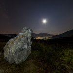 Iniziamo con l’opera di Giovanni Giacoia e Giuseppe Giacoia dal titolo (T)here, una mappa comunitaria iniziata nel luglio 2017, con azioni performative e percorsi sul territorio urbano del paese.  I camminamenti sono stati proposti dagli artisti ai cittadini con lo scopo di raccogliere ed accumulare informazioni sensoriali sul panorama e il borgo, attraverso l’uso di scatole mnemoniche, al fine di realizzare un’installazione permanente.   Il risultato di quest’operazione consiste in un blocco di pietra grigia, collocata in un ambiente naturale conosciuto come Arenara, in totale accordo con i profili delle imponenti montagne circostanti. Nella roccia sono stati creati 23 vuoti e 23 “tasselli sigilli” incisi con iscrizioni in forma simbolica che condensano memorie, auspici, ricordi e desideri dei partecipanti coinvolti.   In definitiva (T)here è la rappresentazione del qui (here) e del lì (there): un dialogo sull’idea di luogo, sulla relazione tra migrazione e permanenza e sulla costruzione dell’identità di un territorio.