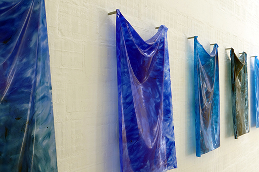 In alto: Francesco Pozzato, Xenia, acciaio, coperta di sopravvivenza, 220x120x20, 2016