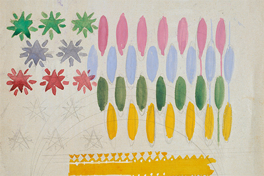 In alto: Piero Dorazio, Senza Titolo o Natura Morta, (dettaglio)1948, Tempera Su Carta, 108 X 75 Cm