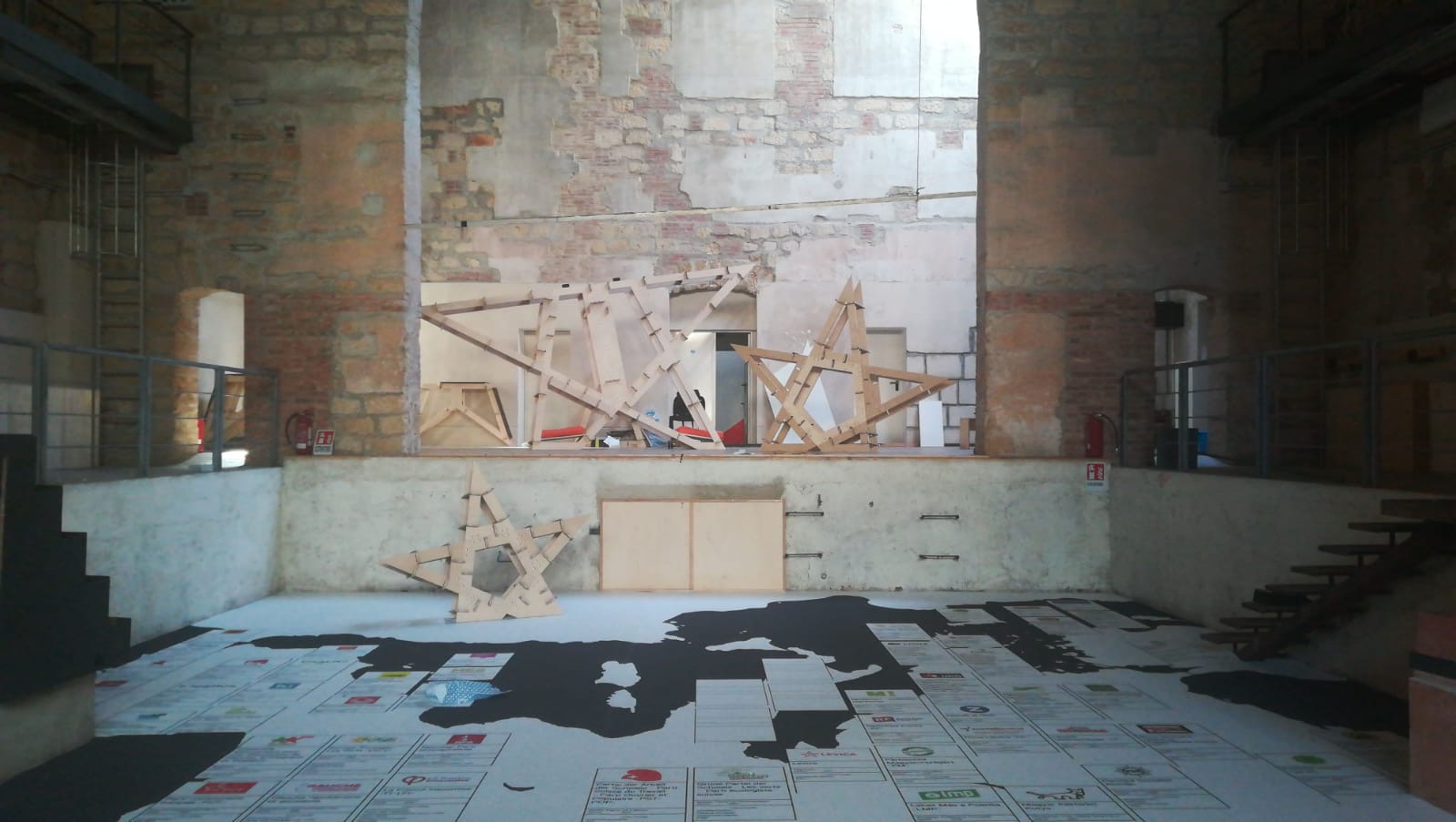 Le opere che portano il visitatore ad esplorare nuovi punti di vista sull’intreccio tra storia e questioni urgenti del presente si susseguono. Al Teatro Garibaldi c’è Jonas Staal con l’opera New Unions che Marsili così ci introduce: «Per tanti anni l’artista ha lavorato all’interno del movimento del Kurdistan siriano, tanto che dopo cinque anni gli hanno chiesto di fare un’installazione che funzionasse come parlamento per le zone curde della Siria, quelle che oggi sono in parte occupate in parte dalle forze turche. Qui a Palermo abbiamo messo in scena la prima retrospettiva di New Unions, progetto nato cinque anni fa. Al Teatro Garibaldi Jonas cerca di immaginare quali altre unioni siano possibili al di là dell’Unione Europea. L’idea di Staal è di andare oltre, immaginare tante “unioni differenti”: tra città, autonomie, tra confederalismi democratici. Questa mostra è dedicata a questa utopia. Il grande tappetto mappa tutti i movimenti progressisti, verdi, femministi d’Europa ed entrando al Garibaldi si dovrebbe riflettere su fatto che se tutti questi partiti si unissero in un unico fronte trans-nazionale forse creerebbero un vero contropotere cittadino sia rispetto all’Europa che ci viene imposta sia rispetto a chi la vuole distruggere».