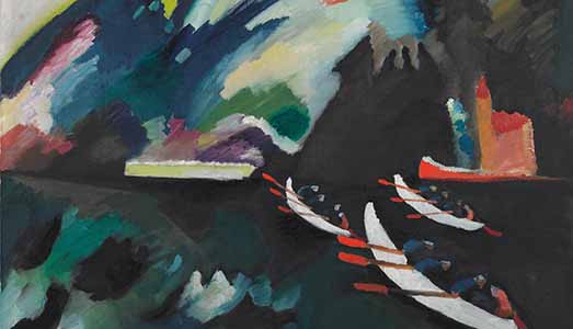 In alto: Vasilij Kandinskij, Lago. 1910, Olio su tela. 98 x 105, Mosca, Galleria Tret’jakovskaja