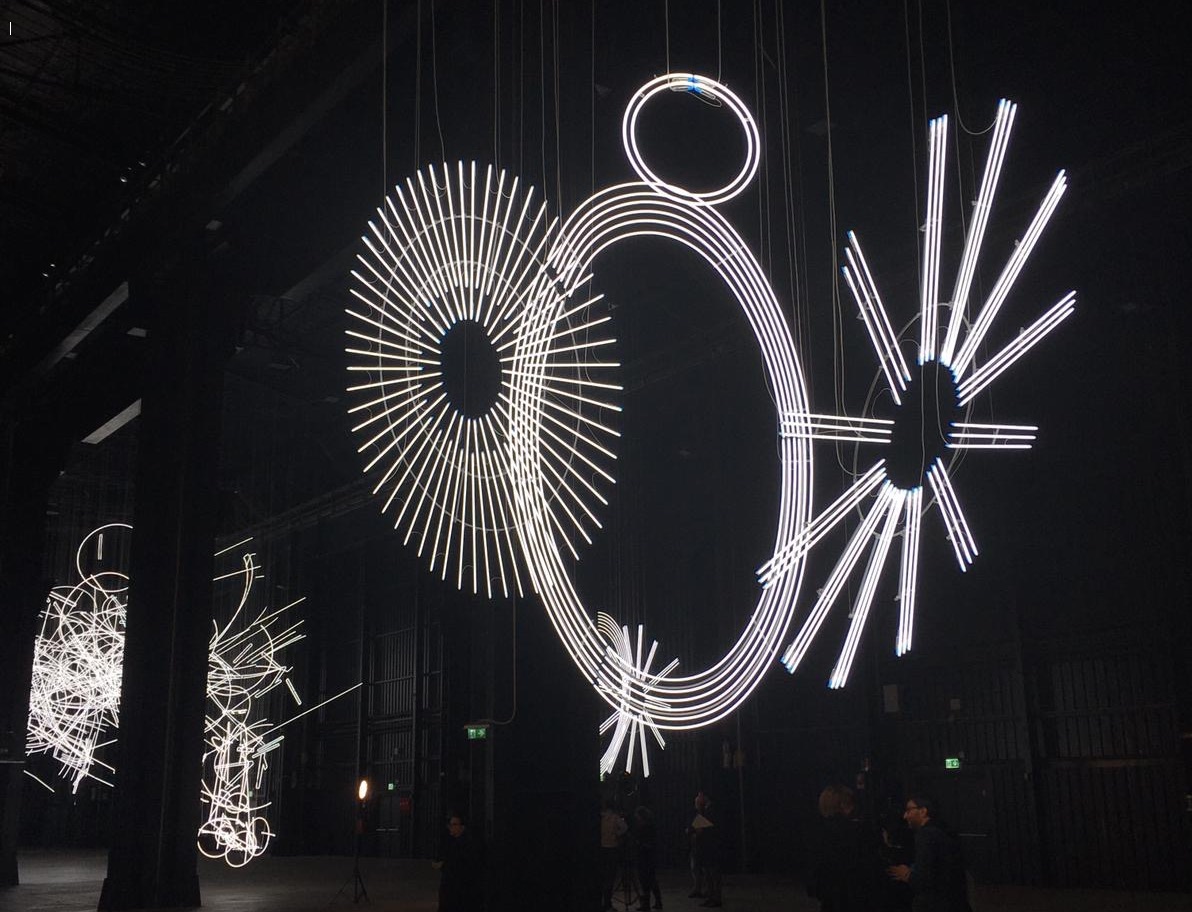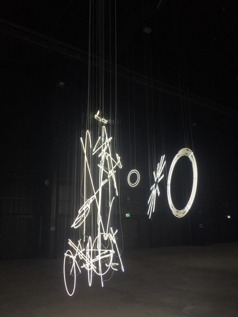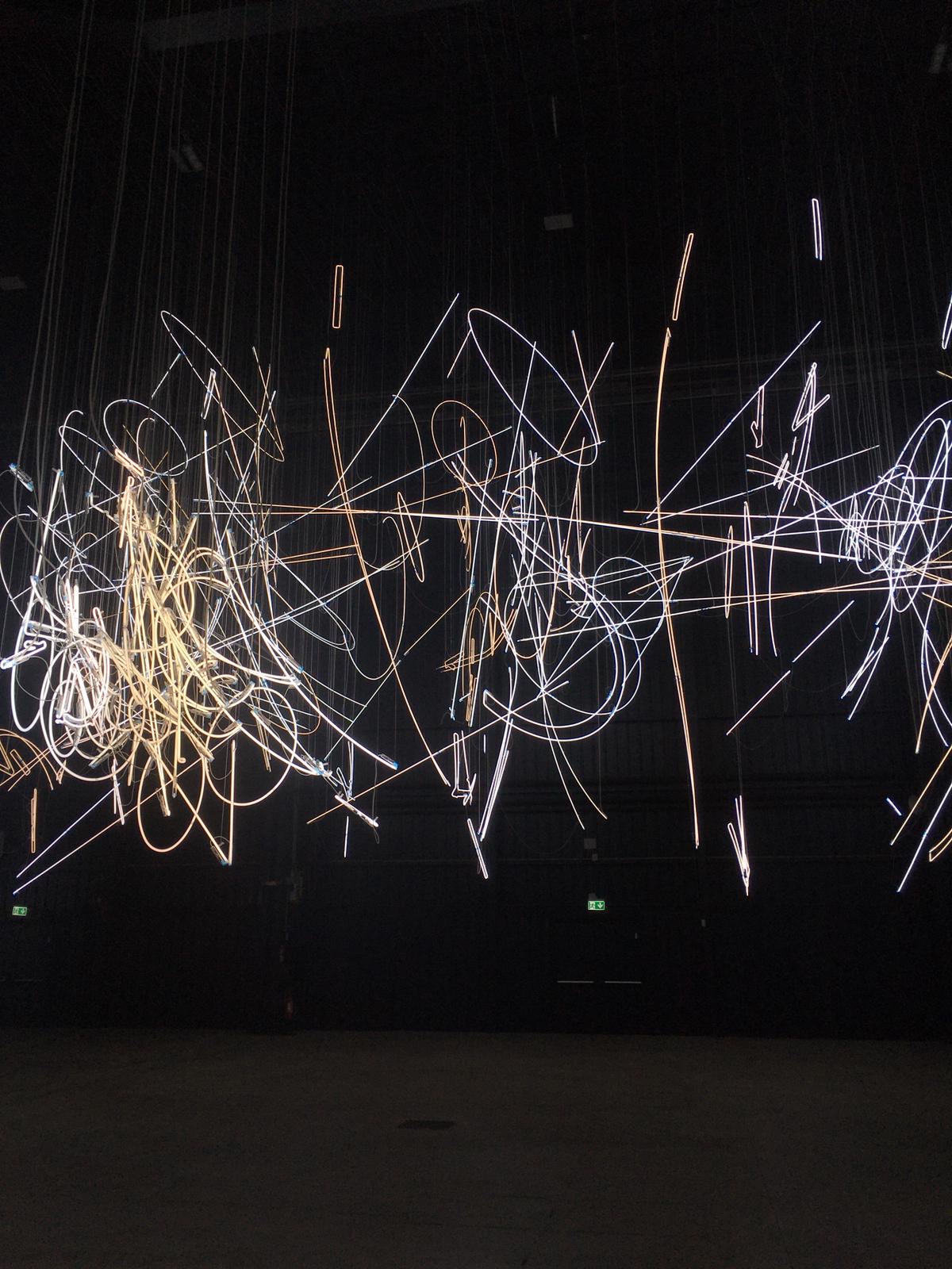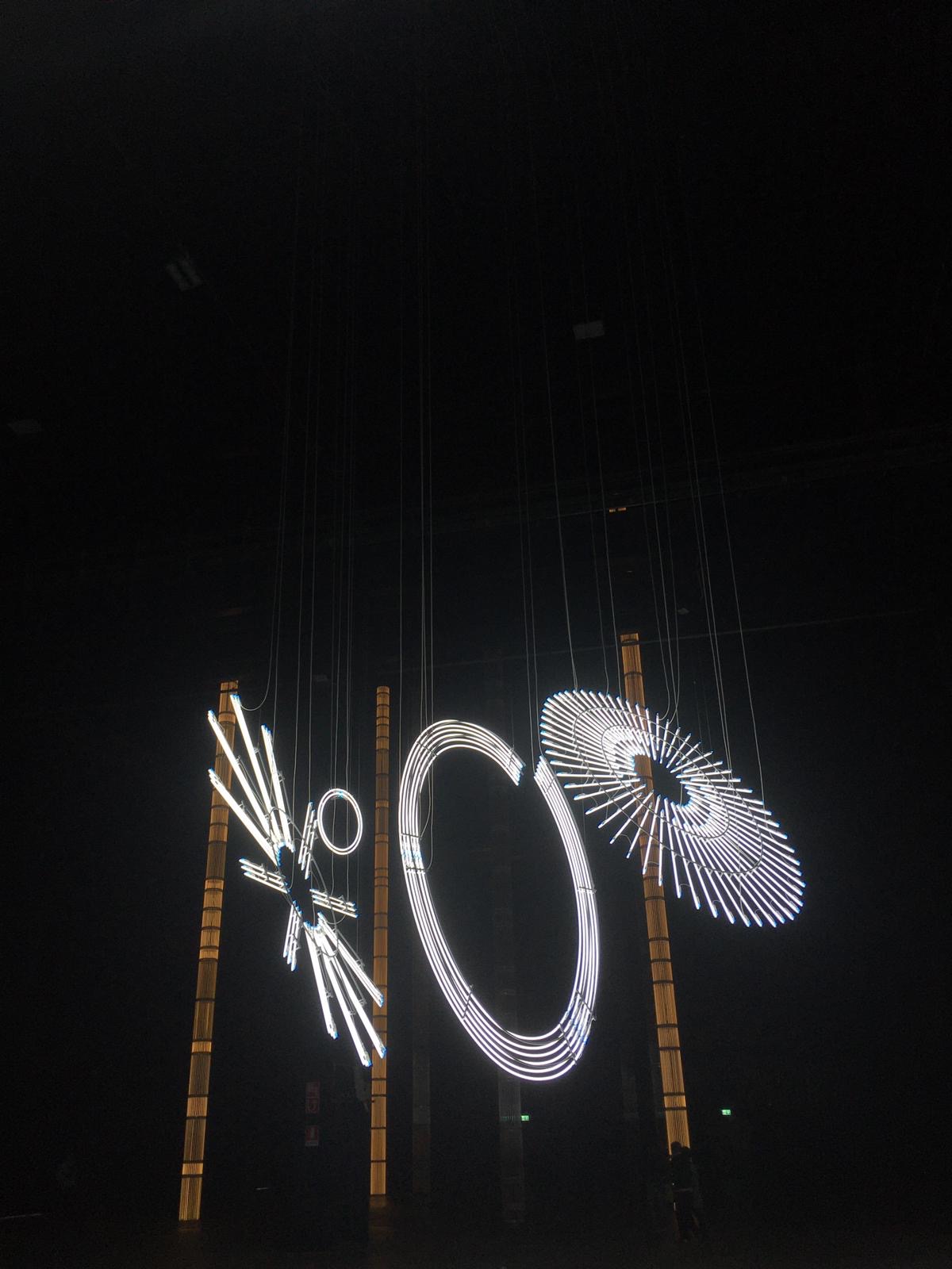 «Il progetto espositivo include una nuova configurazione di Forms in Space…by Light (in Time) (2017), originariamente concepita per le Duveen Galleries della Tate Britain di Londra e StarStarStar/Steer (totransversephoton) (2019), opera appositamente realizzata per la mostra, che ne apre il percorso creando una coreografia di luci e ombre che a intermittenza invadono lo spazio».