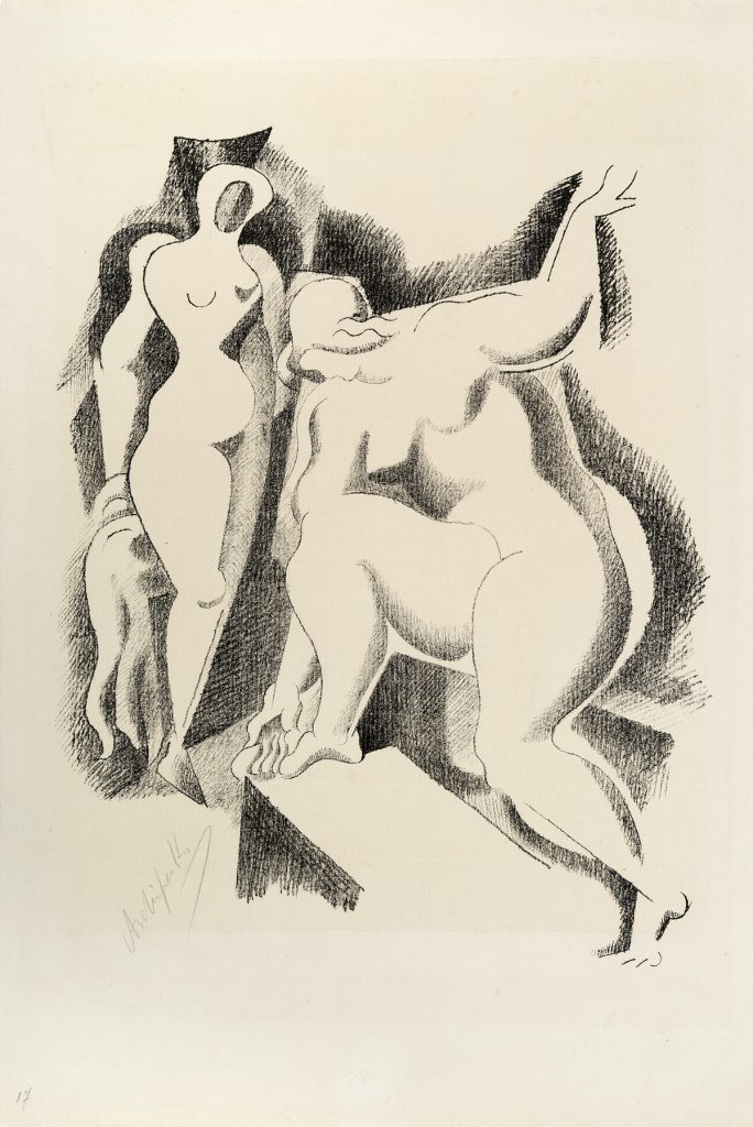 «In mostra sono esposti fogli molto rari, talvolta anche unici: ad esempio la Natura morta di Metzinger, la Ville di Gleizes, la Natura morta di Gris che abbiamo usato come manifesto. E poi le dodici opere del già citato Villon, tutte da scoprire, e alcuni fogli notevoli di artisti meno noti, quali Marcoussis e Csaky, oltre ovviamente alle stampe cubiste (anch’esse piuttosto rare) di Picasso, Braque, Léger e dei grandi protagonisti del movimento. Inevitabilmente la mostra comincia con una stampa di Paul Cézanne: una litografia con i suoi classici bagnanti».