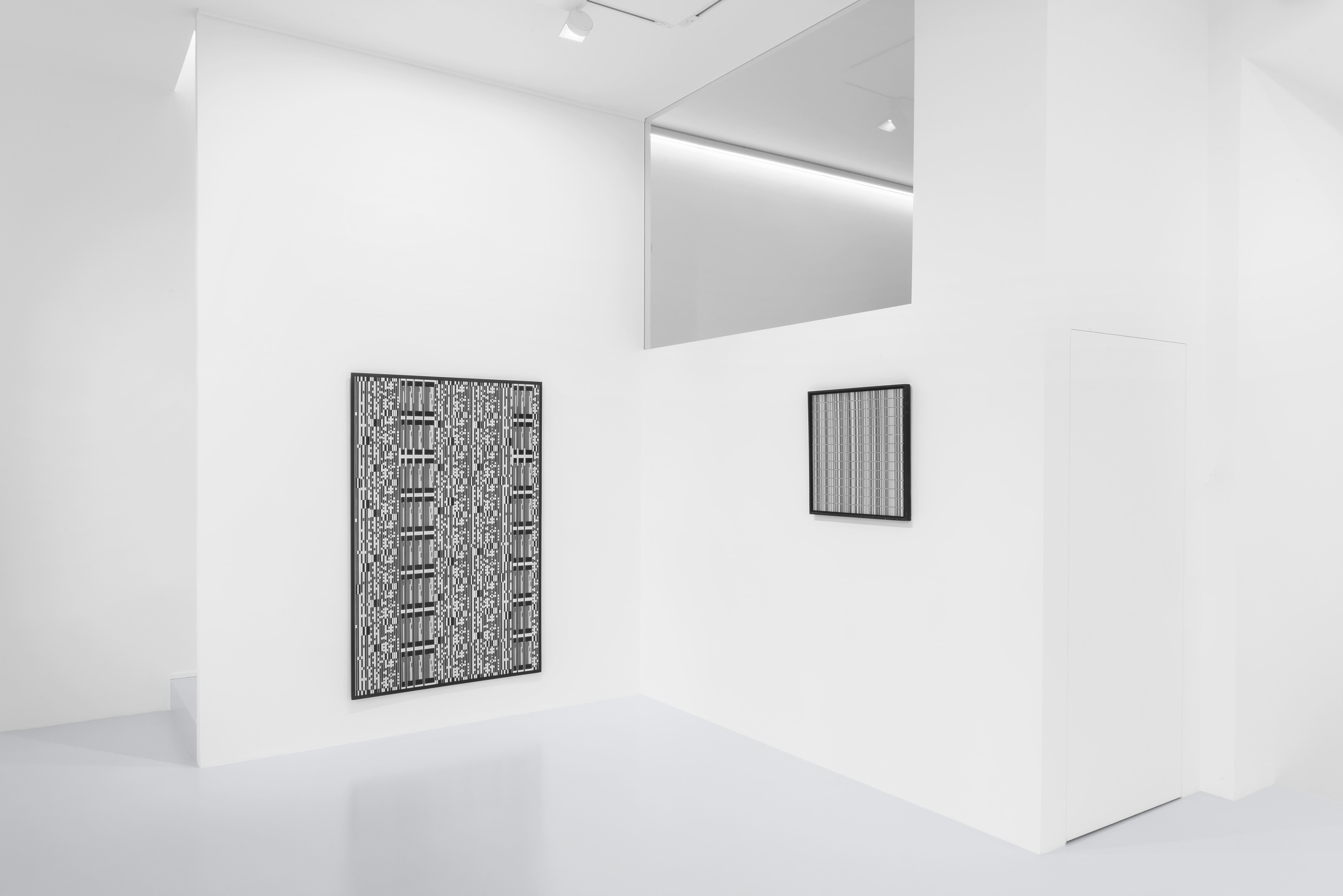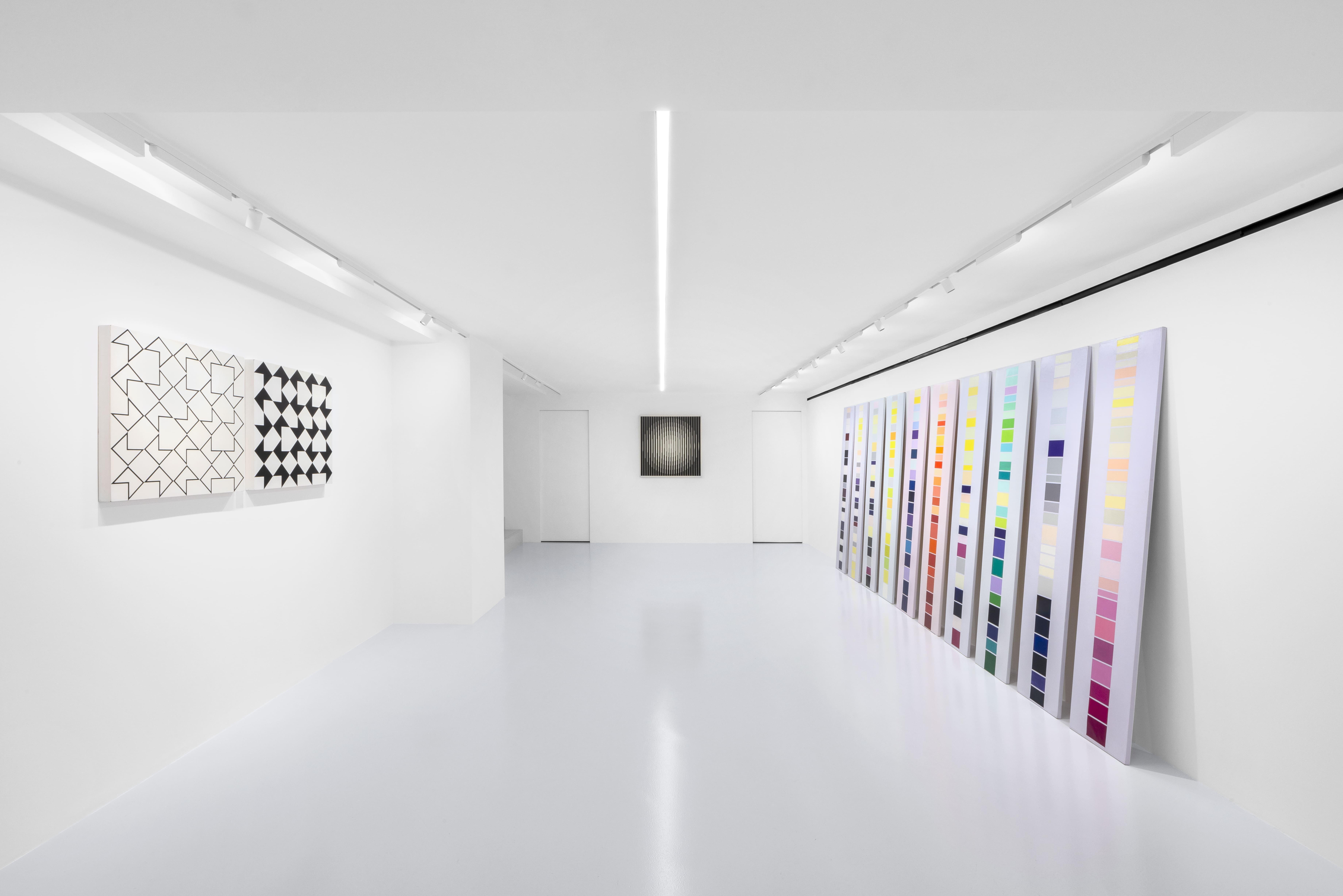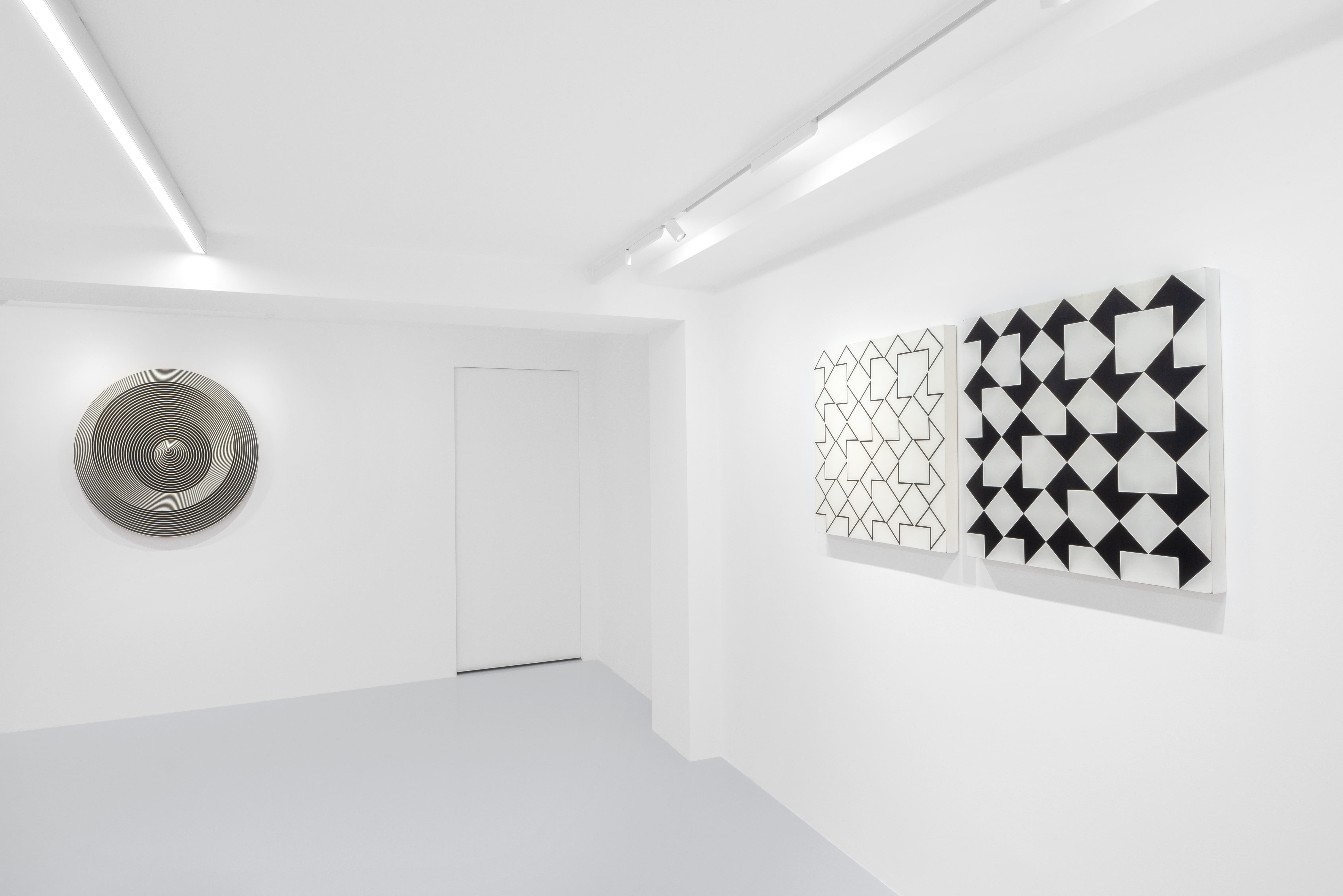 Affiancate a questi lavori sono le vertiginose variazioni curve di Marina Apollonio (Verde + Blu 8N del 1966-1971, N. 44 Gradazione 8+8P nero bianco su nero del 1966-1972 e Dinamica circolare Cratere N del 1968), che mettono alla prova i meccanismi del nostro cervello, e i rarefatti Progetto di spazio di Claudio D’Angelo, “affioramenti visivi” in cui sono applicati con originalità e sagacia i princìpi gestaltici della continuità e del “destino comune”.