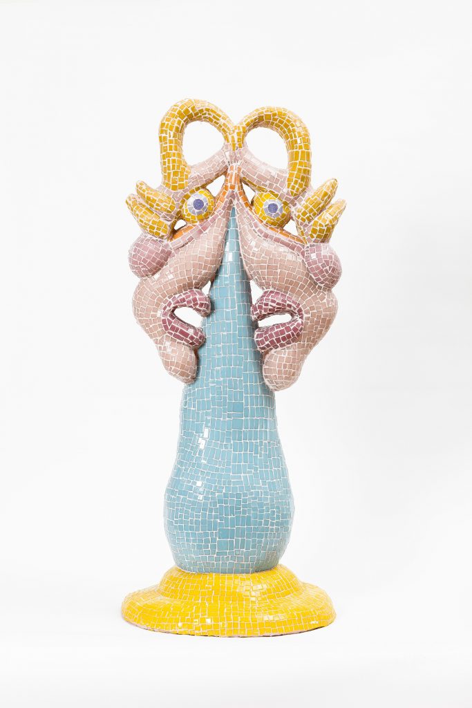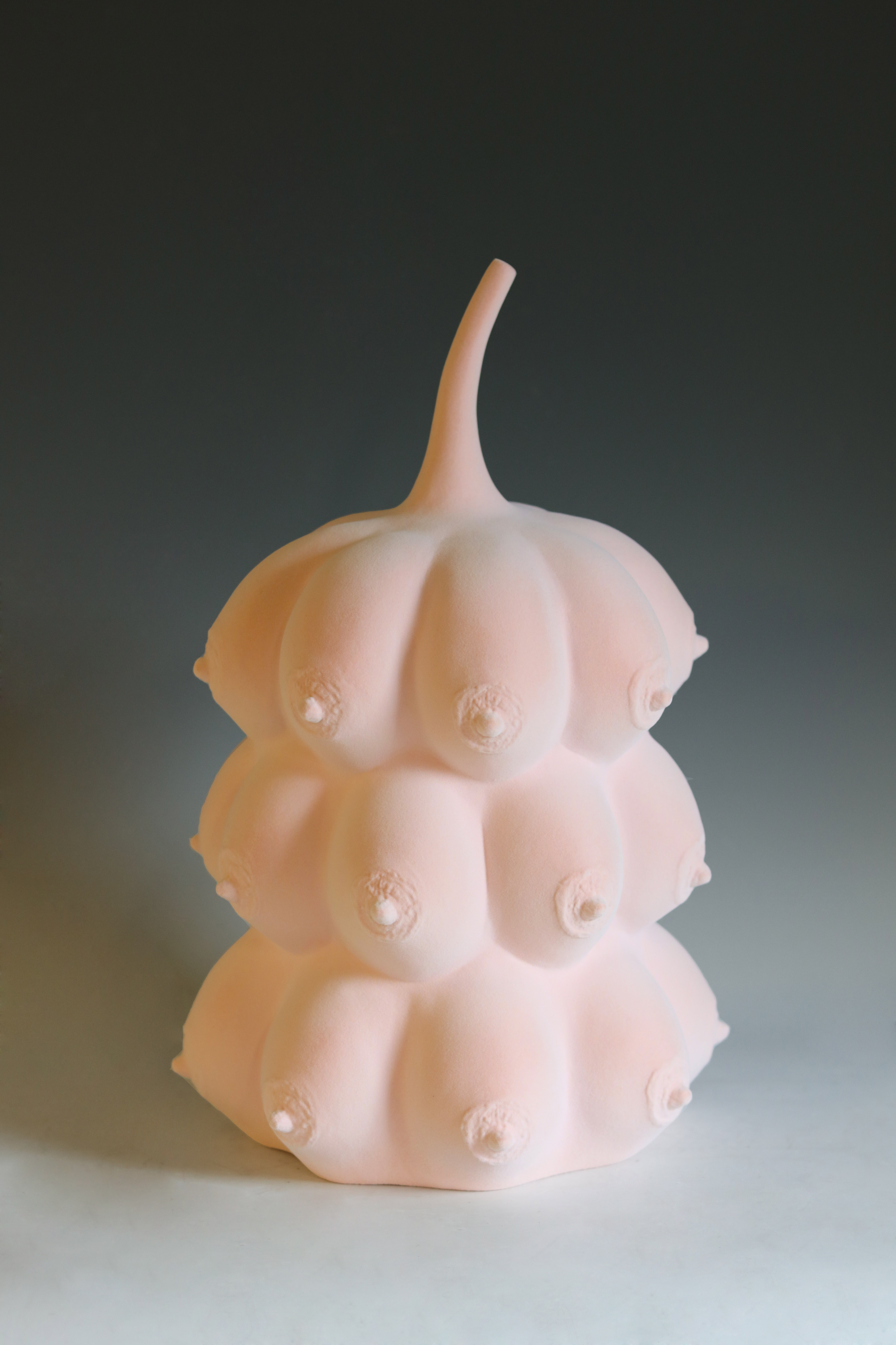 «La performance di Proudick si svolgerà nel loro negozio di scarpe di design – a rappresentare quel paradiso per eccellenza del desiderio aspirazionale femminile. Questa installazione sarà costellata di scarpe in ceramica – dagli stivali da cowboy con teste di serpente che spuntano fuori dalle punte alle delicate scarpe con tacco dal sapore romanesco (ovvero il salame), dalle ballerine a punta con fibbia a forma di rana alle scarpe con zeppa di epoca rinascimentale ispirate alle chopine veneziane del Sedicesimo Secolo.