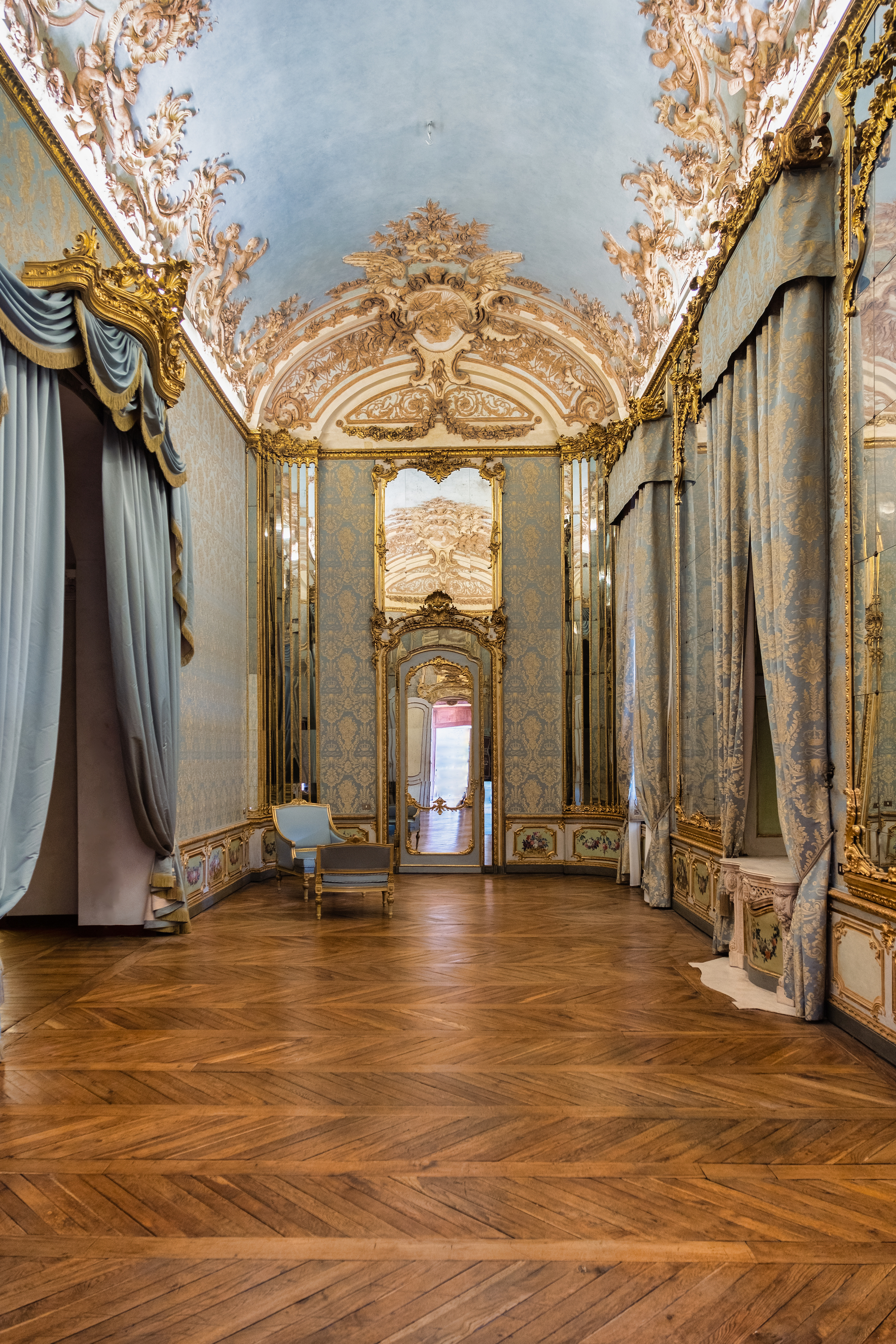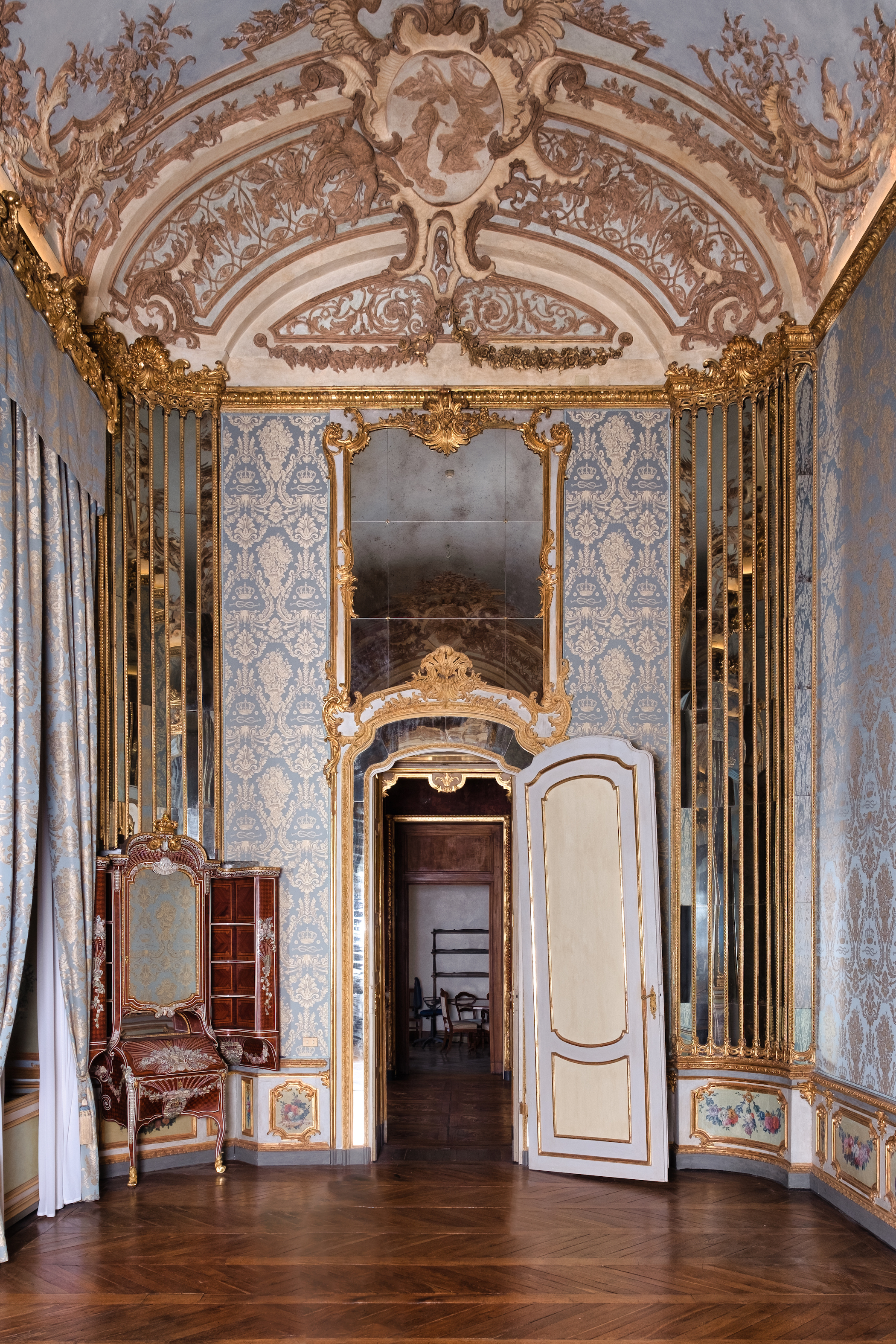 «Gli interventi conservativi nell’appartamento del Duca del Chiablese, Benedetto Maurizio di Savoia, figlio cadetto del re di Sardegna Carlo Emanuele III sono iniziati nel 2016 grazie al sostegno della Consulta per la valorizzazione dei beni artistici e culturali di Torino con il restauro del Gabinetto degli Specchi e del Gabinetto doppio. Il progetto è proseguito nel 2019 con il complesso recupero della Camera dell’Alcova, seguito nel 2020 dagli interventi nelle Camere di udienza e da letto del duca.