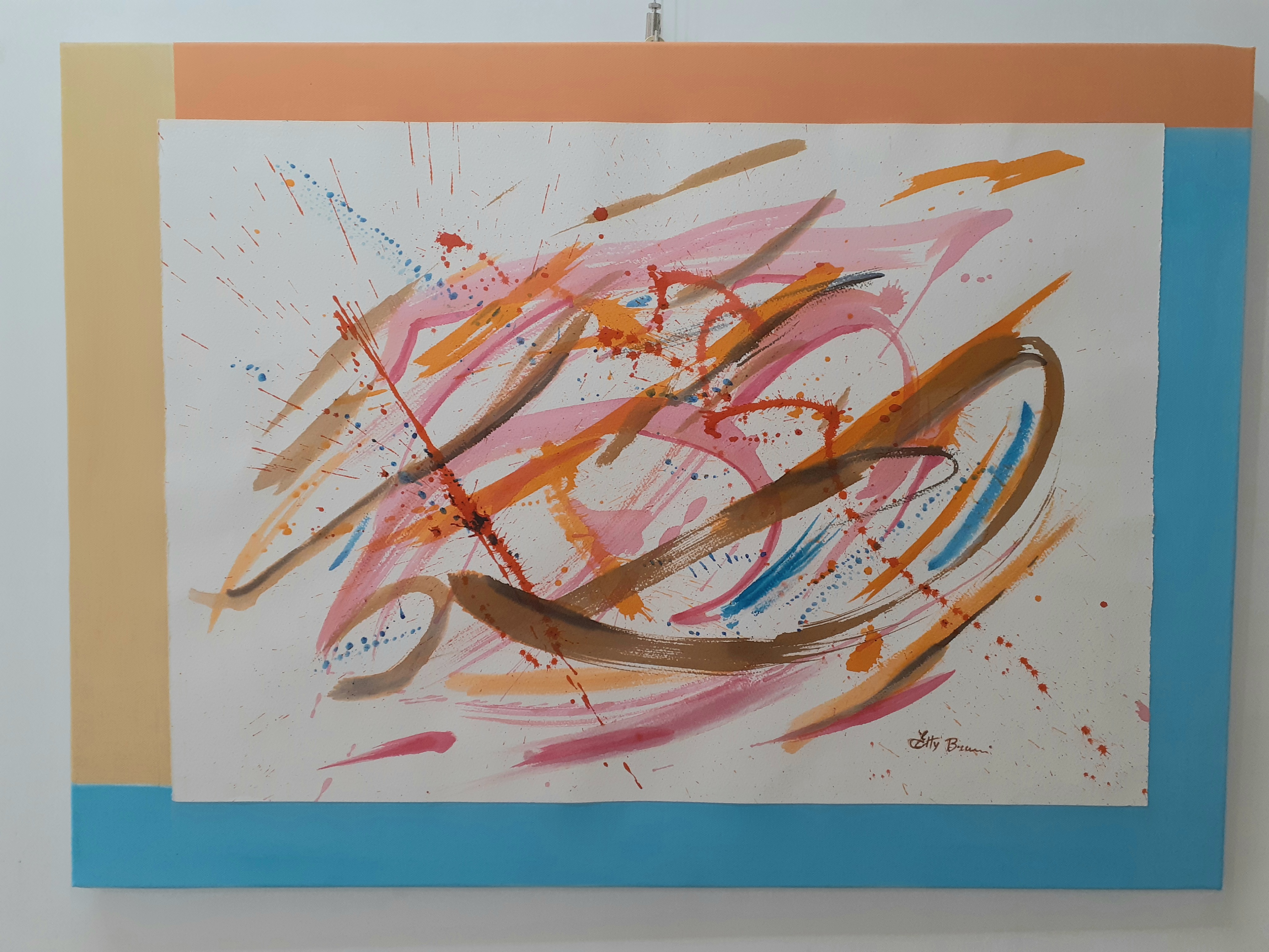 «L’artista – scrive la curatrice nel testo critico – inizia il suo percorso quando, non ancora fanciulla, cercando un modo di esprimersi usò il ricamo, con cui confezionava piccoli quadri figurativi. Seguirono gli studi, i corsi, fino all’acquarello, per lo più figurativo, suo strumento espressivo seguito dall’olio, acrilici, chine e tecniche miste che negli anni l’hanno vista protagonista di molte mostre personali sia in tutta Italia che all’estero. In questa sua ultima produzione giunge, dopo più di vent’anni di ricerca, ad una espressione decisamente astratta informale. La sua pulsione la porta a valicare i confini. La mano scivola sulla tela o carta veloce, decisa e precisa, puntuale nel momento in cui l’artista concentrata si abbandona totalmente alla sua profonda emotività che sente pulsare nell’intimo. I suoi lavori toccano corde che risiedono nel nostro inconscio facendo nascere emozioni, ricordi, sogni. Una via per comprendere e sentire i veri doni della vita. Il sovente uso di colori accesi e squillanti corrisponde al suo desiderio di elargire gioia, allegria, serenità di cui oggi abbiamo particolarmente fame».