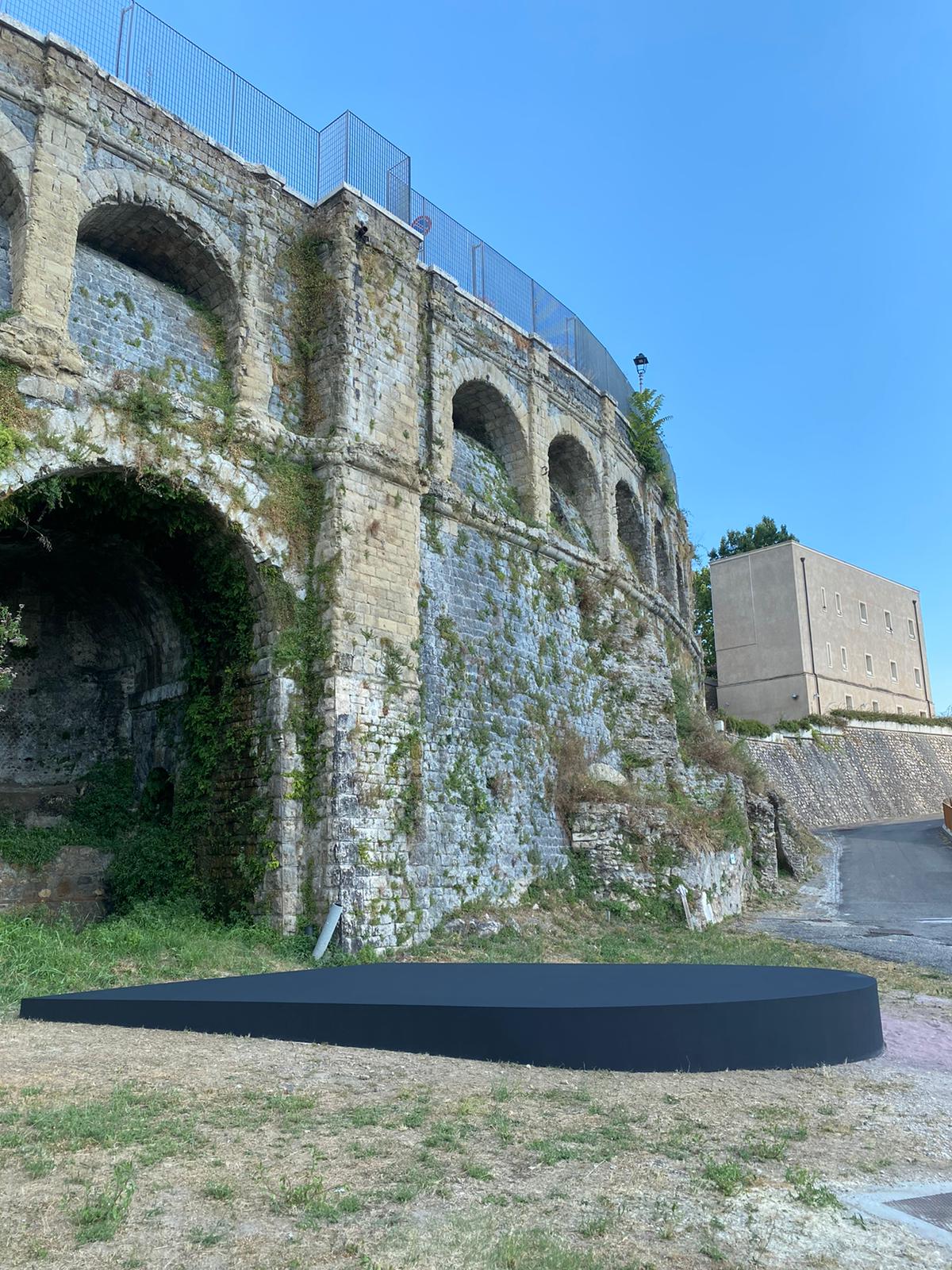 «Il tutto è basato esattamente sul tema del percorso, sul paesaggio, sull’idea di itinerario che ognuno fisicamente svolge e sulle possibili associazioni createsi durante questo percorso. Per me è molto importante il concetto di “navigazione”, ma è altrettanto importante lo stimolo del “confondere”, visto che Villa d’Este, con il suo giardino, offre al visitatore una sorta di guida naturale nell’attraversarlo. Questo posto è stato creato per incantarci e quello che io spiego con la prima opera in mostra, Misguide, è l’esatto opposto: propongo di guardare a ciò che non è stato creato artificialmente e che non è opera dell’uomo bensì un ecosistema “natura naturans” come teorizzato da Spinoza. Gli interventi a Villa d’Este introducono la storia che entrerà poi nel vivo all’interno del Santuario di Ercole Vincitore. Nell’Antiquario il mio lavoro si confronta con la maternità; è presente il bellissimo gruppo delle Niobidi, ritrovate a Ciampino dove, l’acidità della terra, ha reso la pietra di cui sono fatte molto più vulnerabile. Io ho fatto incidere alcune frasi sulle lapidi che le circondano.