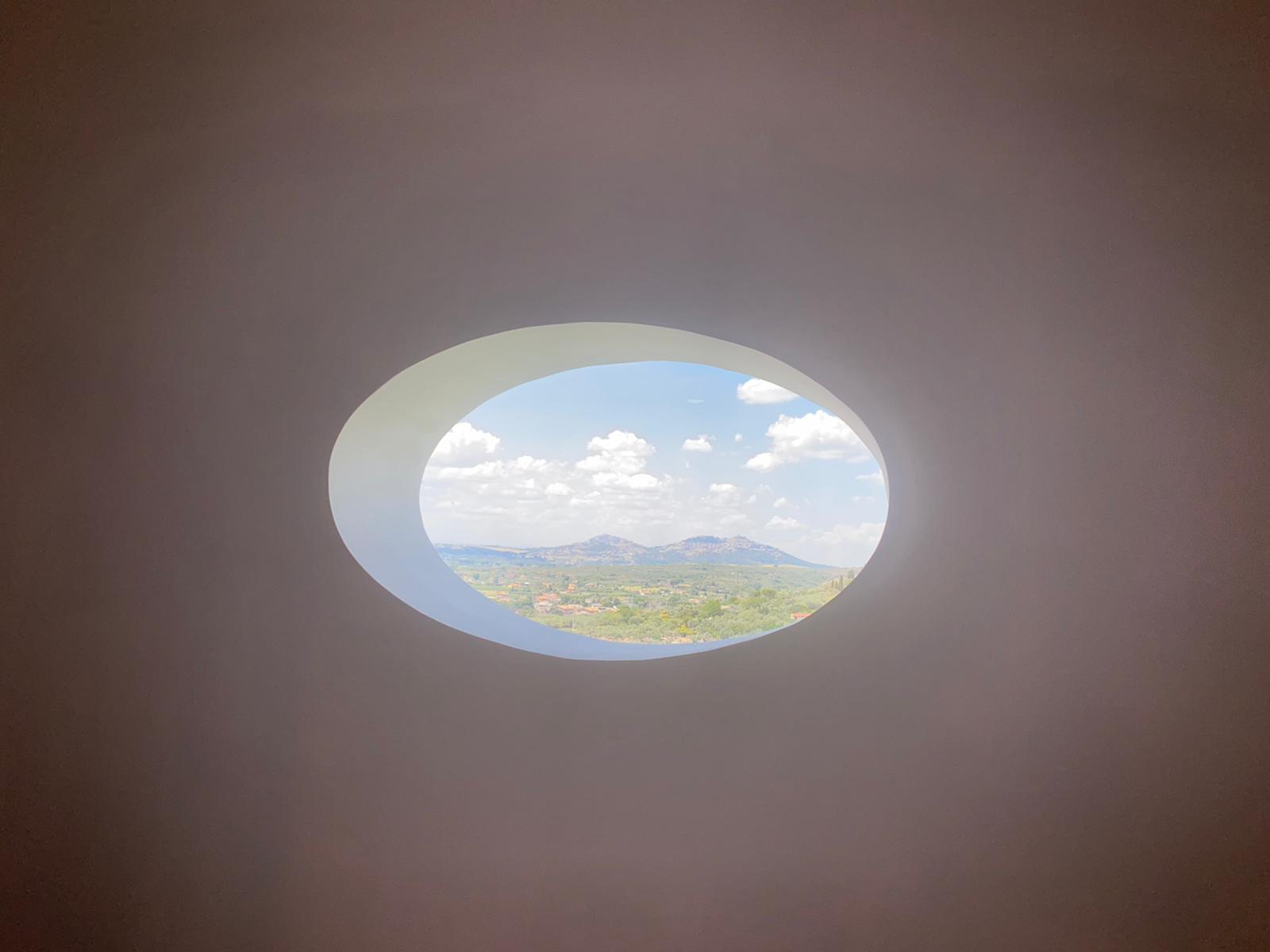Di seguito è presente una installazione sonora che riguarda una storia molto personale, raccontata dalla voce di mia figlia. Ho scelto poi di utilizzare le farfalle per completare la mia riflessione sul concetto di maternità; le farfalle diventano tali soltanto per deporre le uova e poi morire, non si nutrono neppure. Con queste simbologie cerco di analizzare le diverse tipologie di maternità in natura. All’interno delle grotte del Santuario, ho scelto di mostrare, attraverso delle installazioni, un sistema solare parallelo ma fuori misura rispetto al nostro. Ho scelto di utilizzare materiali simbolici come la creta spalmata, secondo il vecchio mito cosmogonico, come la pelle, che ricorda la pelle ferita, morta, che però continua a reagire al sole, all’acqua, etc. Cercando di semplificare, mi approprio di ciò che si dice, di ciò che si crede, che si vede e che si sa, per poi rielaborarlo».