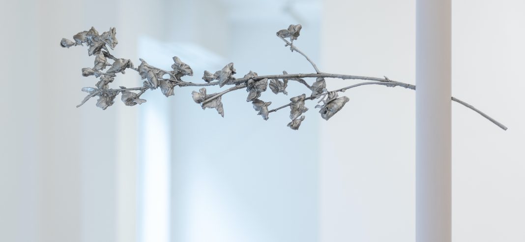 Franck Scurti, Sakura, detail, 2021, stainless steel, aluminium cast, acrylic, 191,5 x 58 x 30 cm © l'artista e MAAB Gallery