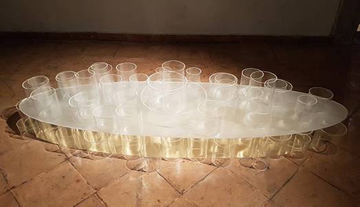 In alto: Paolo Radi, Di apparenza crescente, installazione scultorea – 200x70x30 circa – 2017