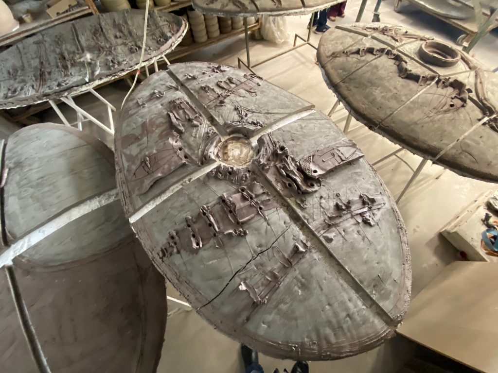 «Il progetto si arricchisce a Pavia di ulteriori valenze simboliche e di una installazione particolarmente affascinante: dieci scudi di dimensioni importanti che raccontano e contengono personaggi e vicende della storia pavese. Il passato di capitale longobarda, gli Sforza e i Visconti, Leonardo e naturalmente l’arca di Sant’Agostino, padre della Chiesa e uno dei più grandi filosofi cristiani, sono momenti di un percorso che trova nell’opera dell’artista una narrazione che ribalta il piano della storia nella contemporaneità.” (Valerio Dehò)», prosegue il comunicato.