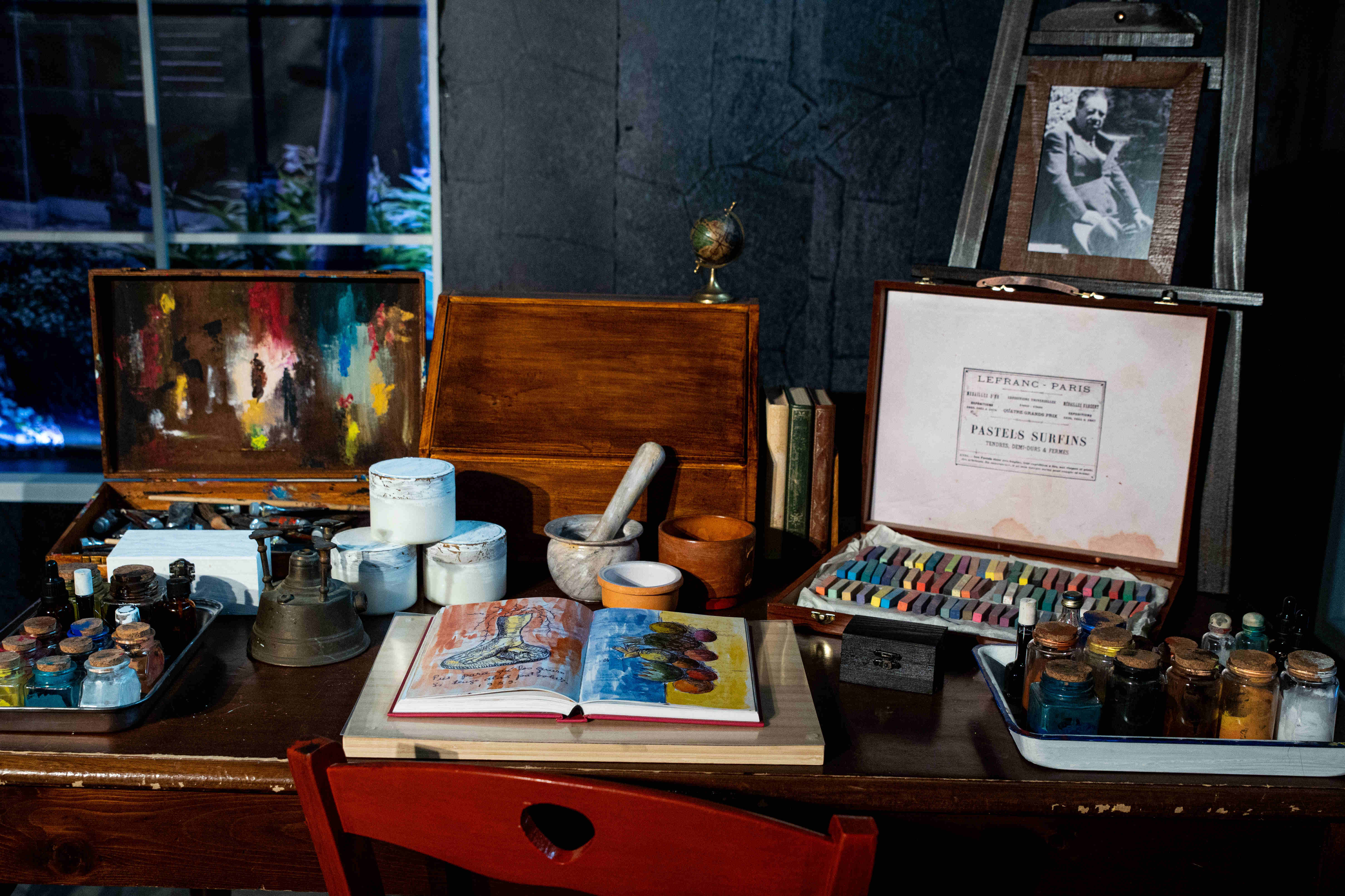 «La mostra, dopo una sezione multimediale con immagini animate e una avvincente cronistoria raccontata attraverso le date che hanno maggiormente segnato le vicende personali e artistiche della pittrice, con sue frasi e citazioni alternate a fotografie celebri, entra nel vivo con la riproduzione minuziosa dei tre ambienti più vissuti da Frida a Casa Azul, la celebre magione messicana costruita in stile francese da Guillermo Kahlo nel 1904 e meta di turisti e appassionati da tutto il mondo: la camera da letto, lo studio realizzato nel 1946 al secondo piano e il giardino. Qui è ricostruita l’intera stanza con il grande letto a baldacchino con lo specchio che utilizzava per potersi ritrarre anche quando costretta a letto dalla malattia e dove morì il 13 luglio del 1954; la camera è arredata con oggetti tipici della cultura messicana, tra cui sculture di pietra e pupazzi di cartapesta, con quadri e fotografie, libri, mobili e le stampelle personali. Lo studio riproduce lo scrittoio e la scrivania con tutte le boccette dei colori ed i pennelli, il diario di Frida, la sedia rossa impagliata, la sedia a rotelle e il grande cavalletto. Nel giardino ci si immerge nell’area lussureggiante di vegetazione che Frida curava e nel quale abitavano vari animali come scimmie e pappagalli», si legge nel comunicato stampa.